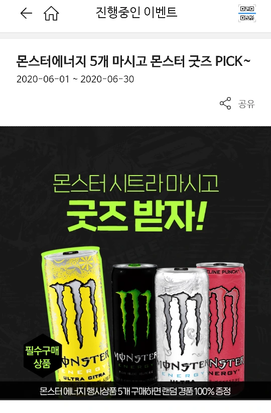 최근에 준비해야 하는 것이 있어일찍 자고 일찍 일어나 새벽을 달리기 때문에 에너지 음료가 필요했다. 어차피 6월 한 달이다.보통 10쯤에 자서 1시나 2시에 일어나 하루를 시작하는데 이 반식의 단점은 이런 식으로 며칠 달리면 10시에 자서 아침에 일어나게 된다는 맹점이 있다.그래서 그 야심한 시간에 달달한 에너지 음료가 필요하다는 것이다.그러다 이벤트로 경품도 받으면 일거양득이다.
