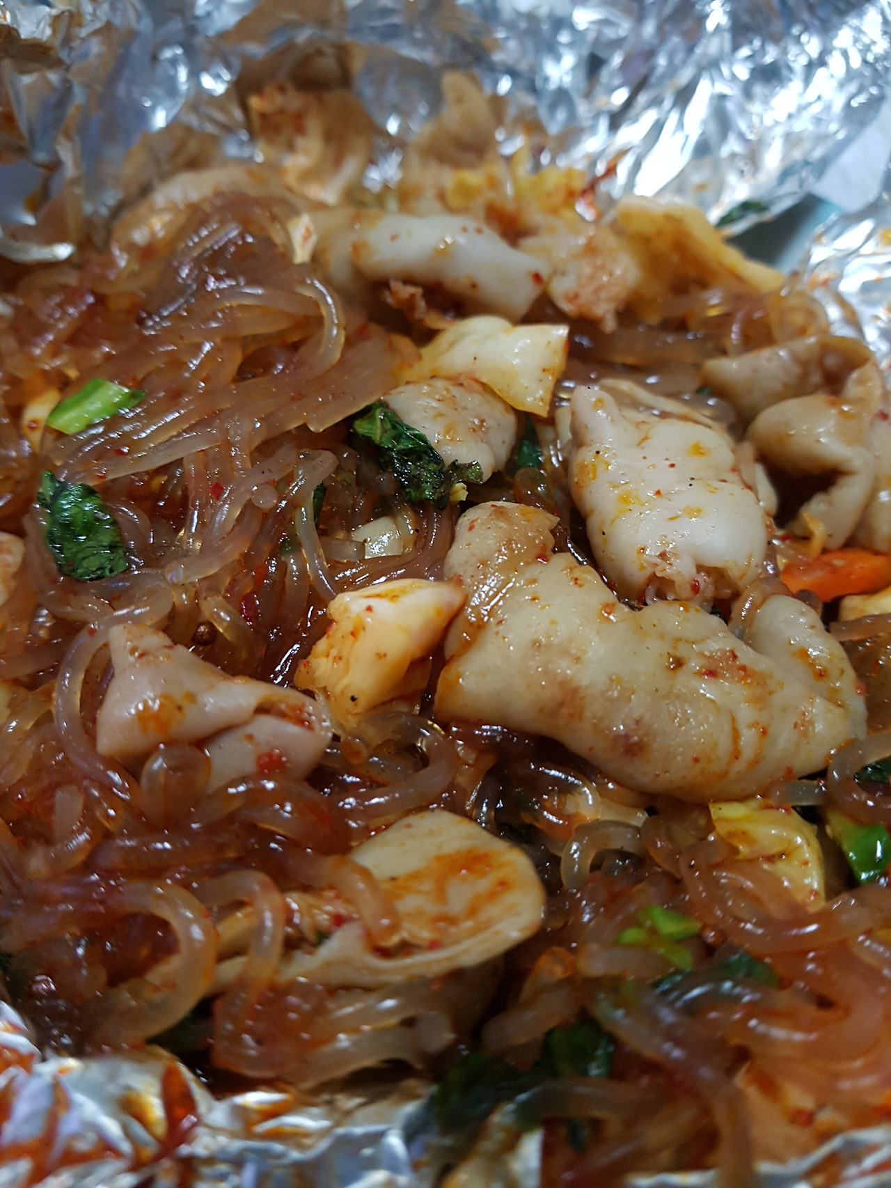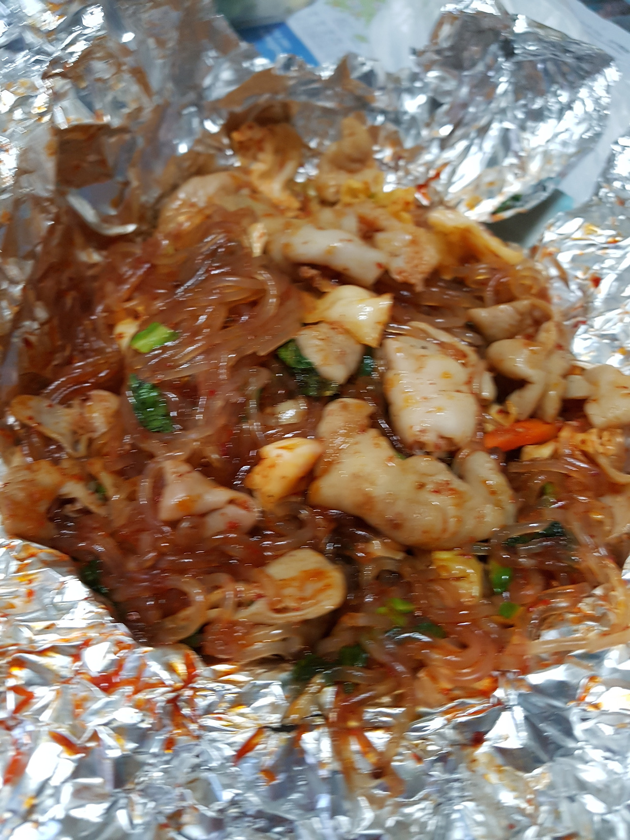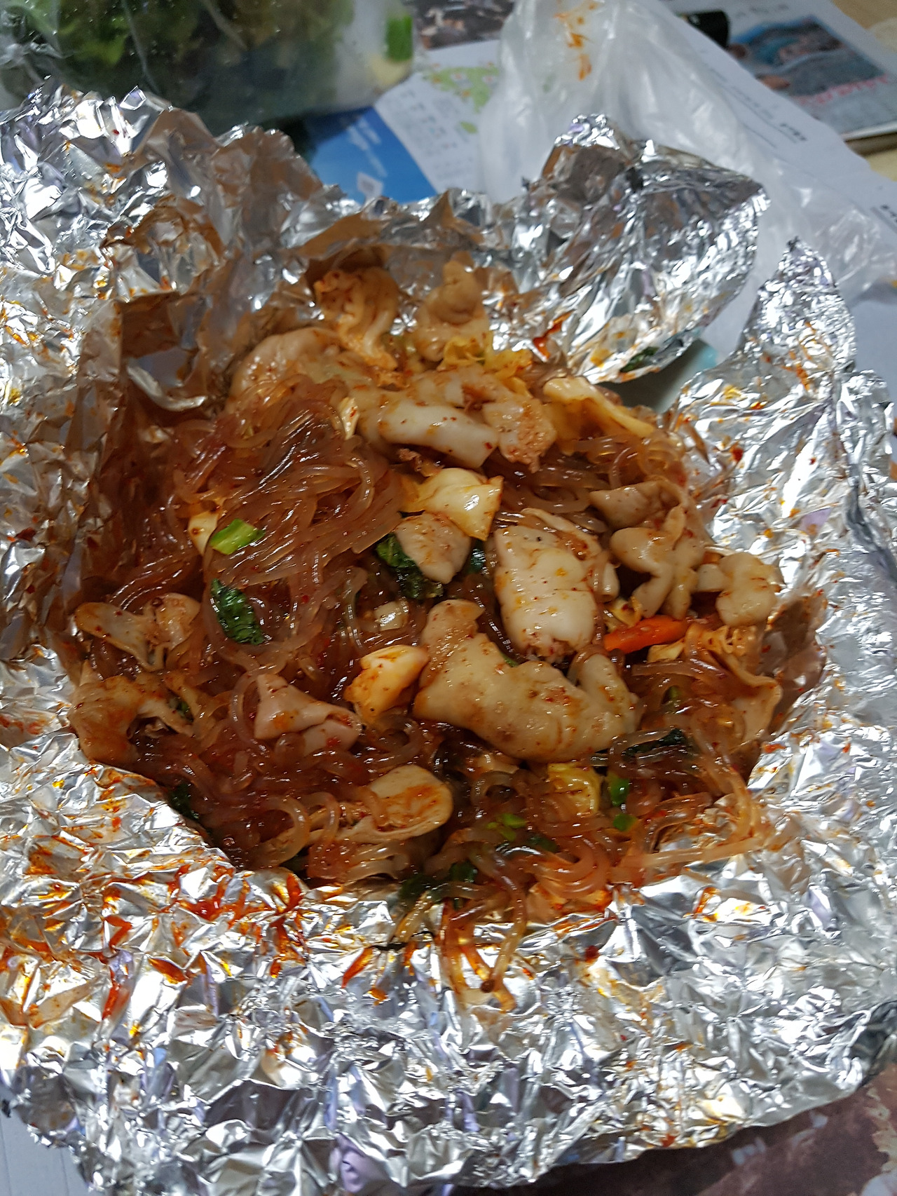 곱창을 풀고 아버지와 통영다녀온 이야기도 듣고 이런저런 이야기를 하다보니 곱찹이 게눈 감추듯 사라졌다. 2인분을 포장했어야 했었나라는 아쉬움도 있었지만, 진짜 저녁은 중국요리로 시켰다. 때마침 주문 한 것이 곱창을 다 먹고 얼마지나지 않아서 도착했다.