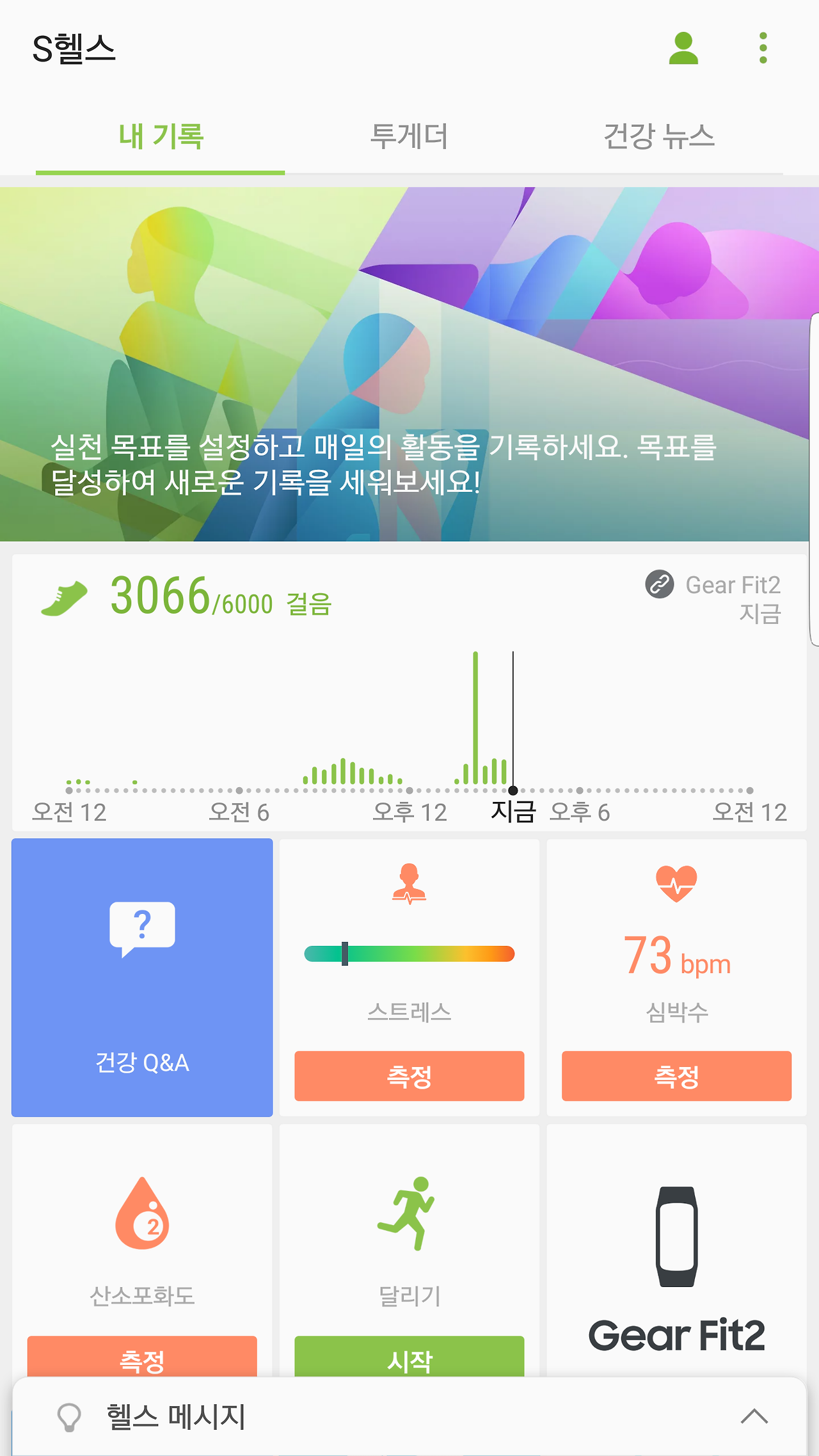 그러다 요사이 조금의 변화를 맛보게 되었다. 사용시간이 줄었다는 것이다. 바로 기어핏2, 손목에 채널을 만들어 놓으니 굳이 자주 확인해 볼 이유가 없었다. 바로 나의 용도는 전화, 문자, 메신저, 메일 등의 놓치고 있는 정보가 있었냐였다.