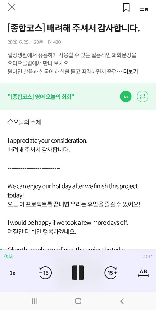 일단은 지속성의 문제인데 대중교통으로 출퇴근이 일정한 사람들에게 적합합니다. 듣다가 잠자는 한은 있더라도 영상보다 조는 바람에 폰을 떨구지는 않겠지요.