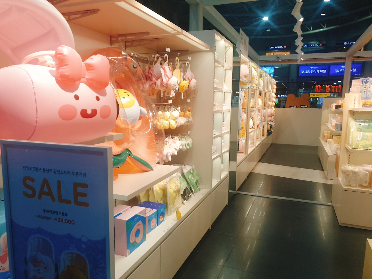 용산역 팝업에서 구매카카오프렌즈에서 아이템 하나를 구매합니다.용산역 사람들이 많은 곳에 자리를 잘 잡은 거 같습니다. 역시 캐릭터의 시대입니다.