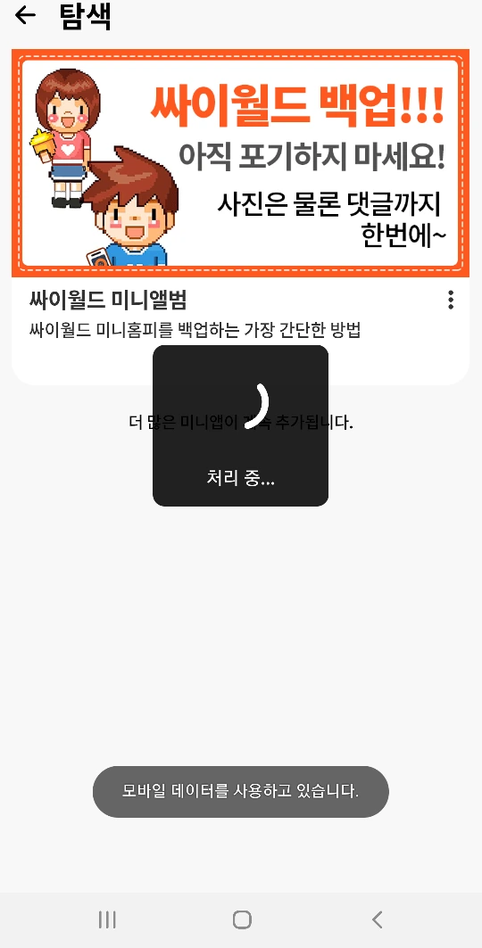 싸이월드 백업 완료입니다.나의 과거와 추억의 발자국, 옛 추억에 스스로에 깜짝깜짝 놀랍니다. 예전에도 백업을 했던 거 같은데 기억이 안 납니다. 하여간 完
