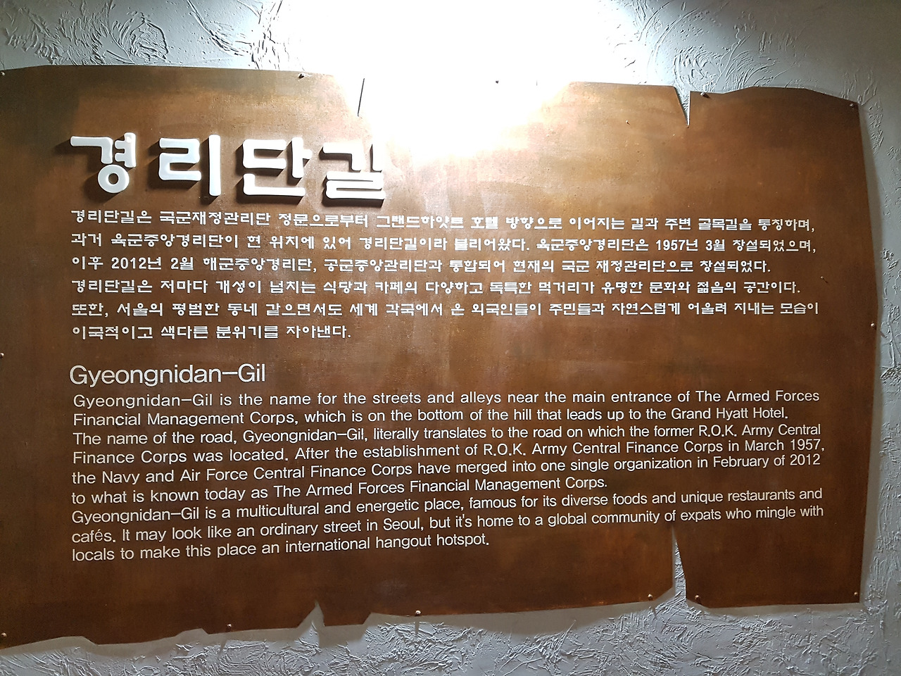 그리고 경리단길 명판을 보면서 왜 경리단길이라는 것을 알게 되었다.