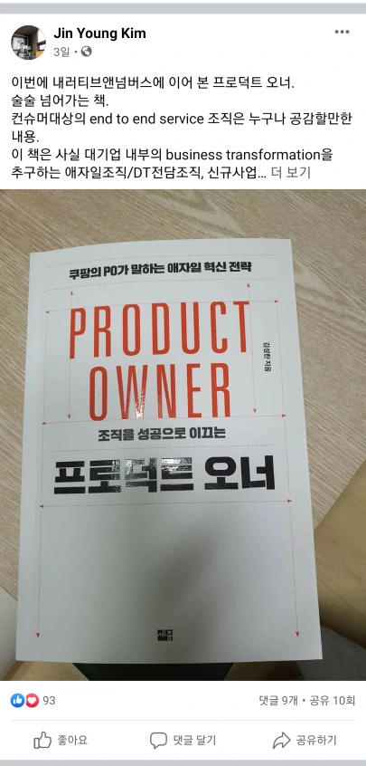 진짜 독전감두 권의 책이라 와따리 갔다 하다가 결국 오늘은 프로덕트 오너를 들고 나옵니다.숫자와 제품 서비스가 약한 나에게는 딱입니다.