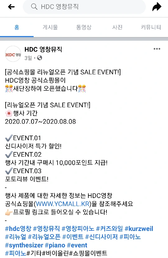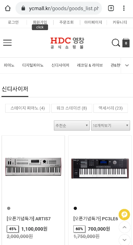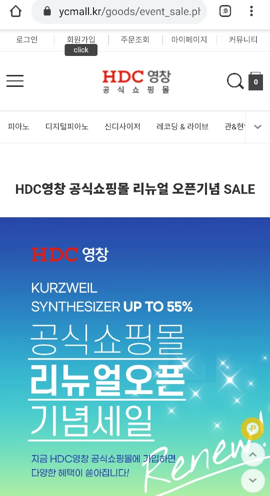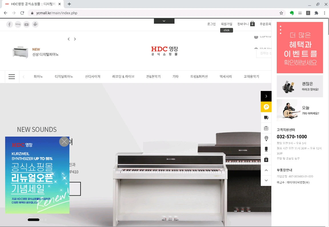 영창뮤직 홈페이지 리뉴얼 행사로신디사이저를 할인한다고 합니다. 오픈 기념 특가의 혜택을 누려보는 센스