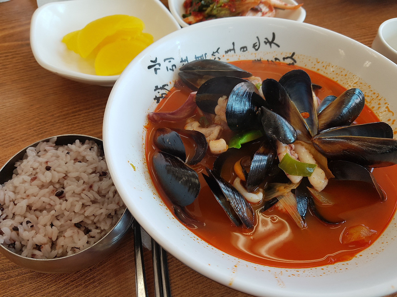 양이 어마무시하다. 홍합이 가득하고, 무엇보다 짬뽕안에 순두부가 특이했다. 홍합껍데기를 다 발라내니 식사준비 완료다.