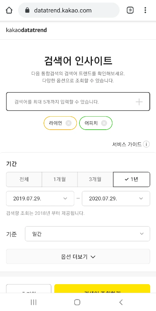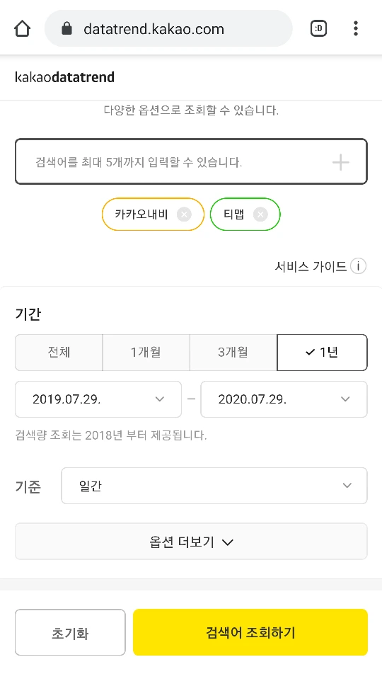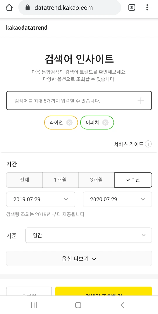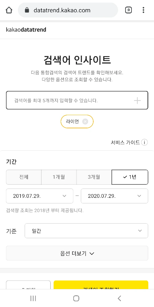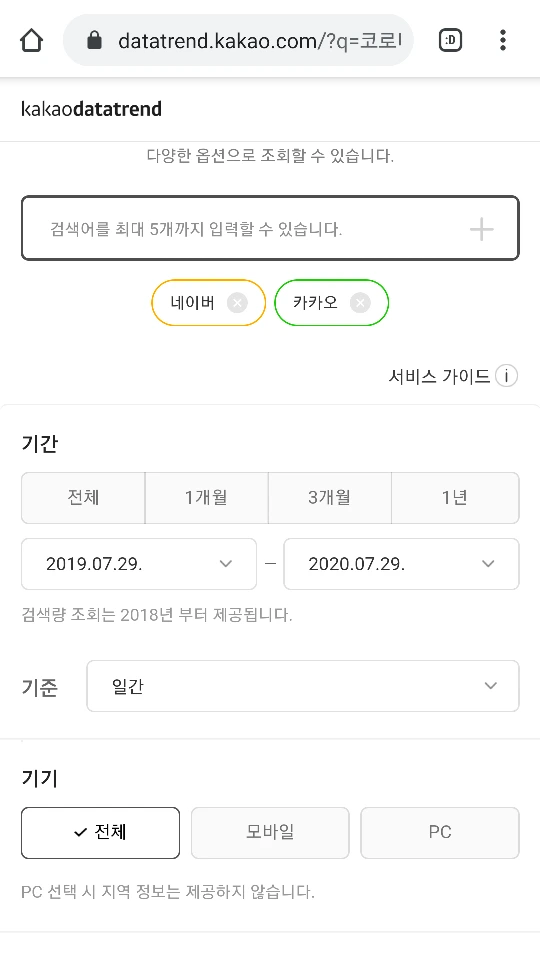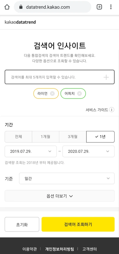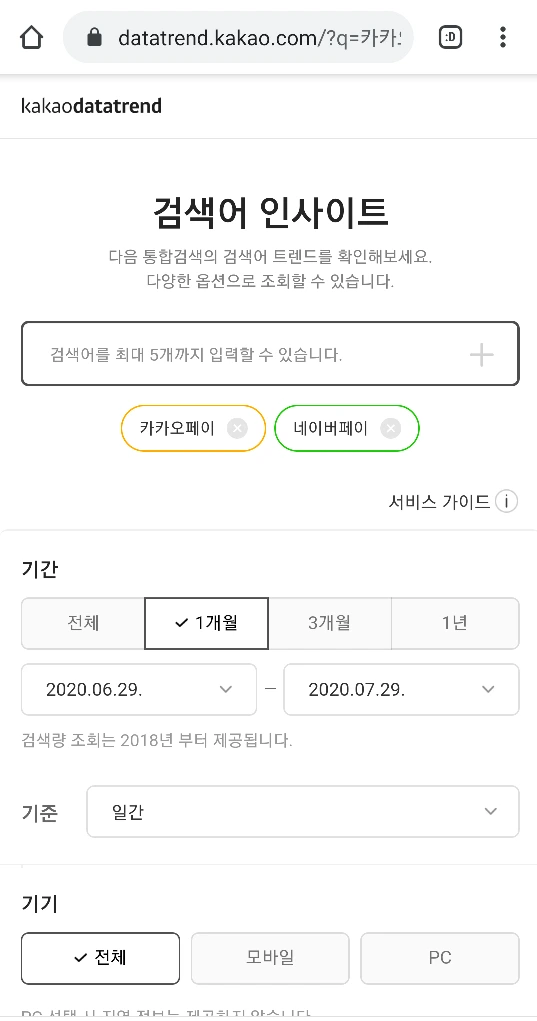 kakaodatatrend,검색량변화추이,다음검색,트렌드