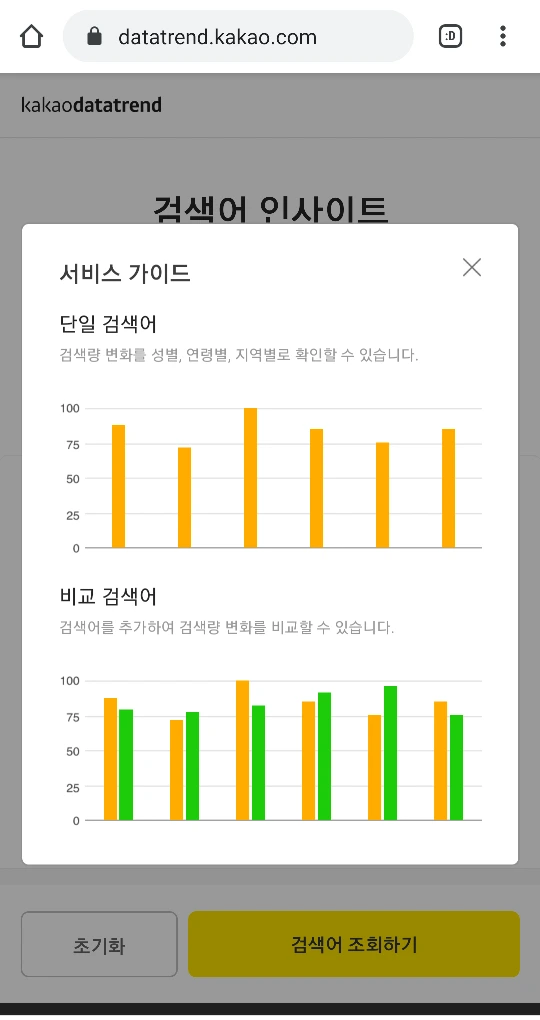 다양한 키워드 비교를 해 봅니다.전체적으로 사용성이 편리합니다.그리고 어느 정도 트렌드는 읽어볼 수 있습니다.나머지 나름 인사이트는 사용자의 키워드 조합과 시간 연령에 따른 촉이 중요해 보입니다.물론 구글이나 네이버만큼은 아니어도 모바일에서 사용하기가 편하다면 어느 정도 쓸만합니다.