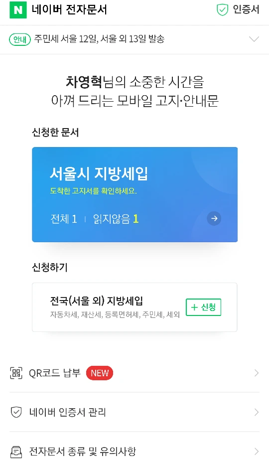 전자고지서의 시대종이로 따로 챙기지 않아도 됩니다. QR코드 정도로 생각했는데 괜찮습니다.