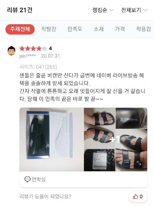 N쇼핑리이브로 구매한 슬리퍼 버켄스탁