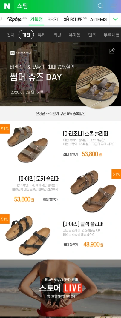 버켄스탁추천,슬리퍼,N쇼핑LIVE,모바일홈쇼핑