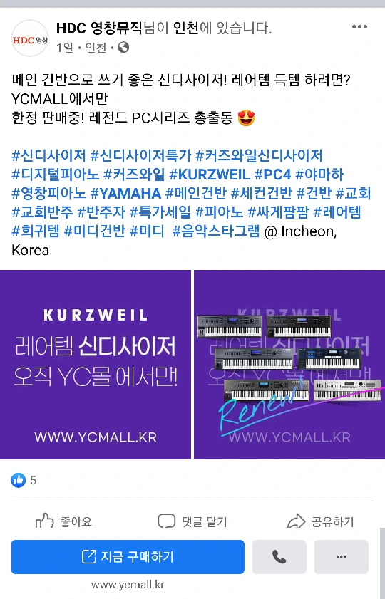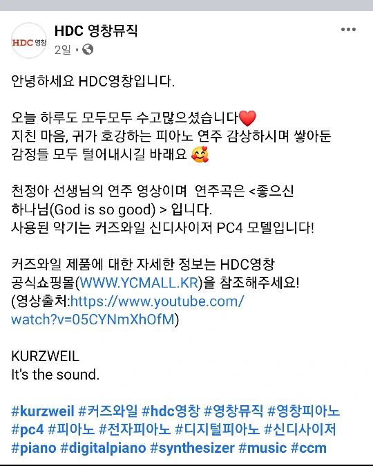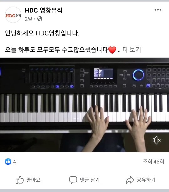 영창뮤직 페이스북에 신디사이저 연주