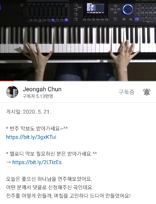신디사이저추천,연주,좋으신하나님,악보,유튜브