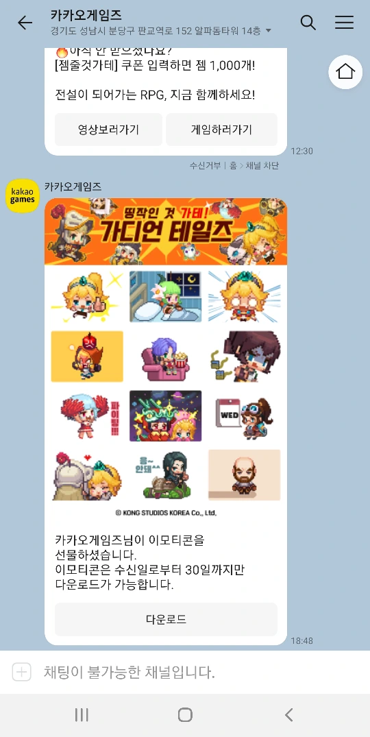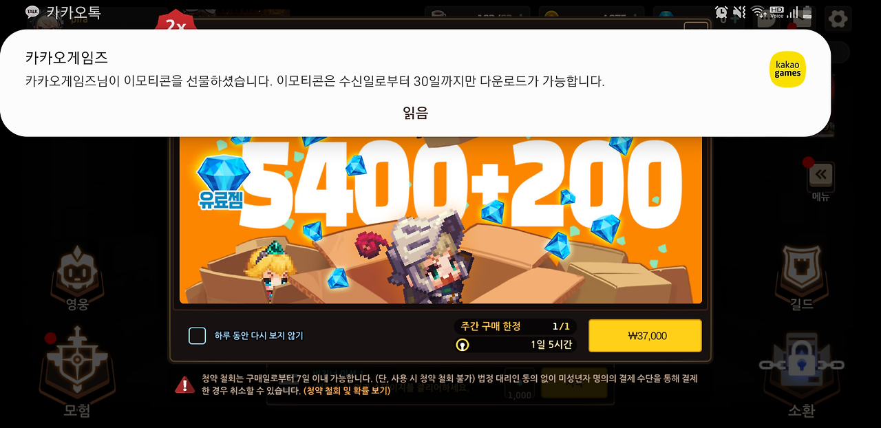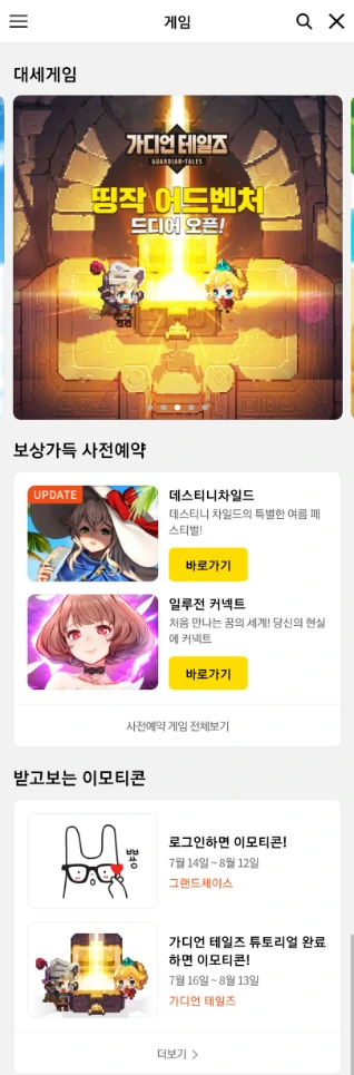 보통 스포츠 게임 아니면 무료 이모티콘 받자마자 바로 지우는 편인데, 이번에는 가만 놔두었습니다.나름 땡기는 게임입니다. 구성이나 이야기 전개나 아주 괜찮습니다. 간만에 아주 괜찮은 게임입니다.가디언 테일즈 근데 어제 보니 이런저런 이야기도 있었답니다.