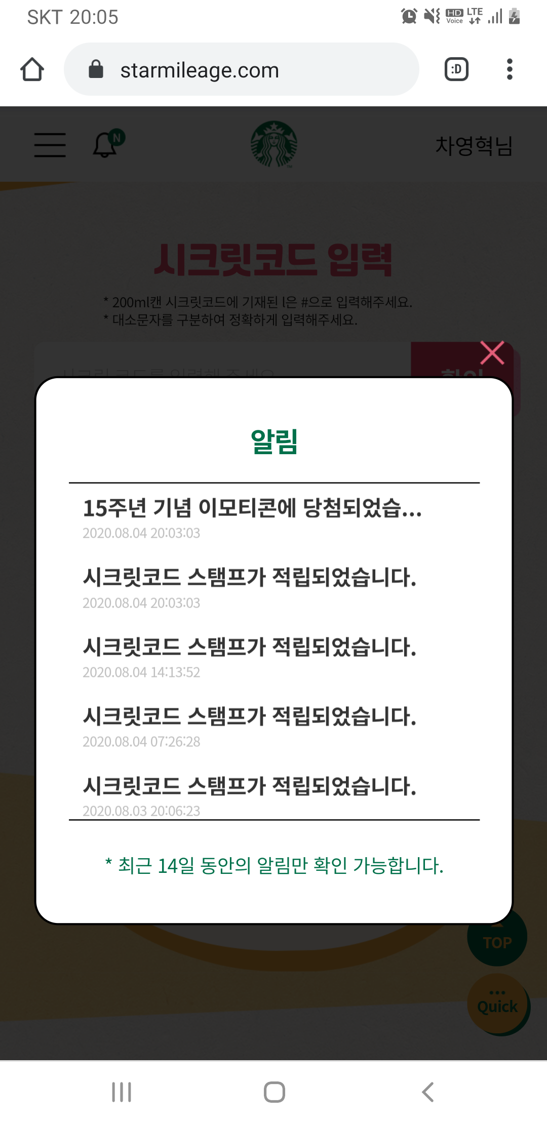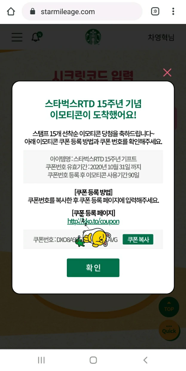 Star mileage event,15주년,쿨토드백,이모티콘 | 올해도 스타벅스 RTD 2020년 스타 마일리지 이벤트가 시작되었습니다. 15주년 기념이라고 합니다. https://www.starmileage.com/ 스벅 RTD 페이스북 회원 인증, 일 �