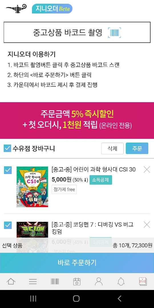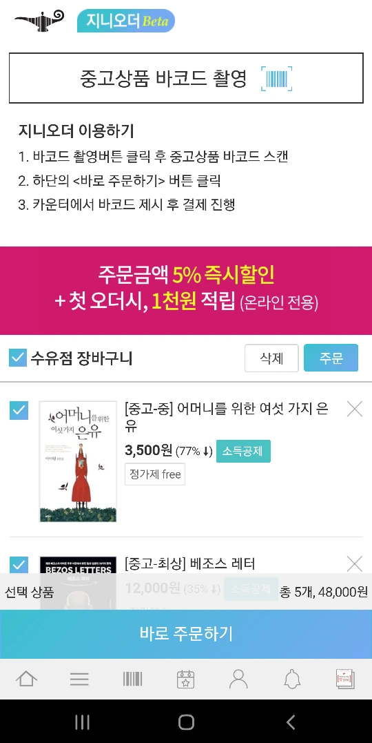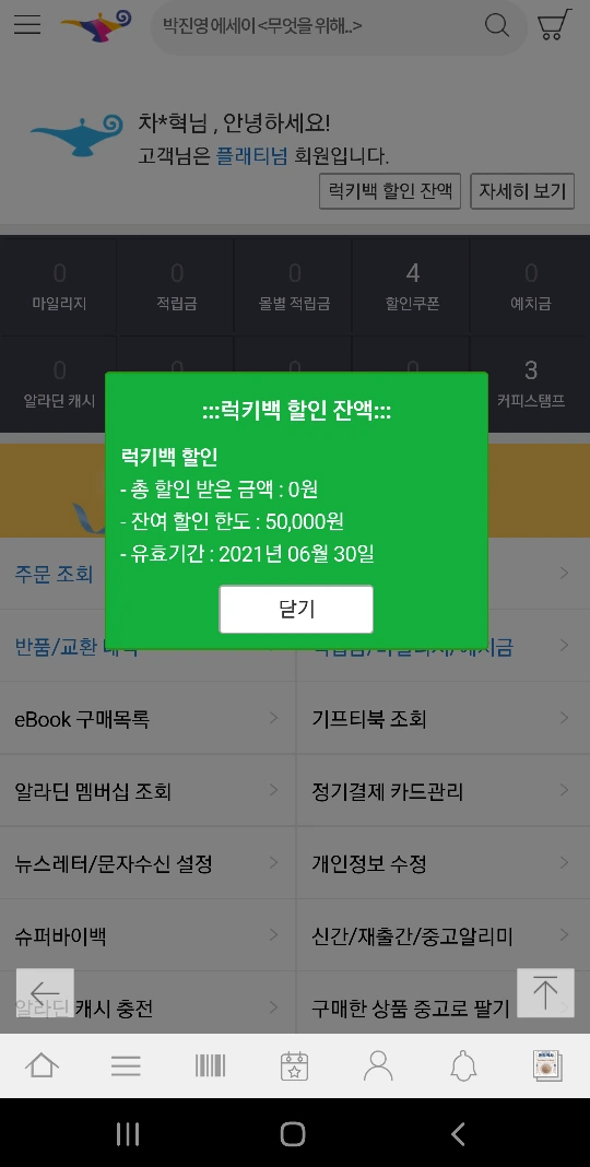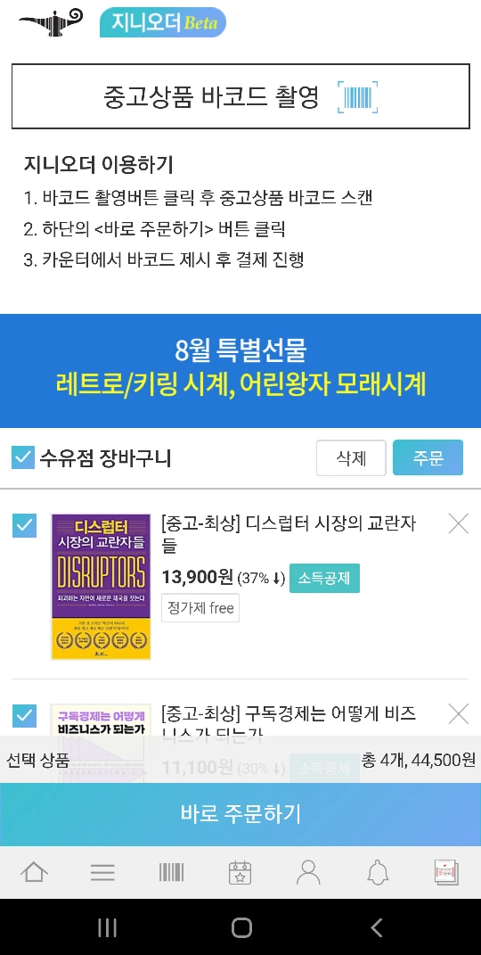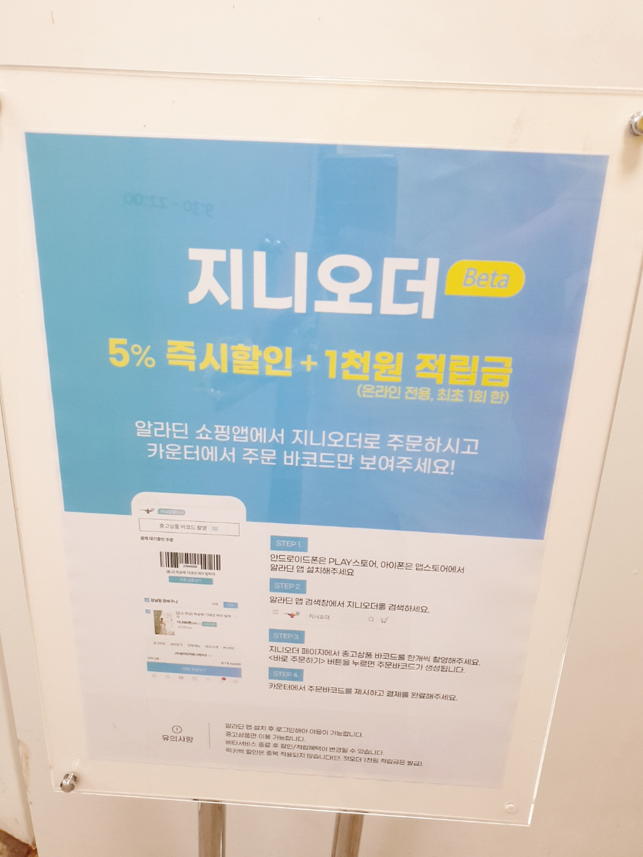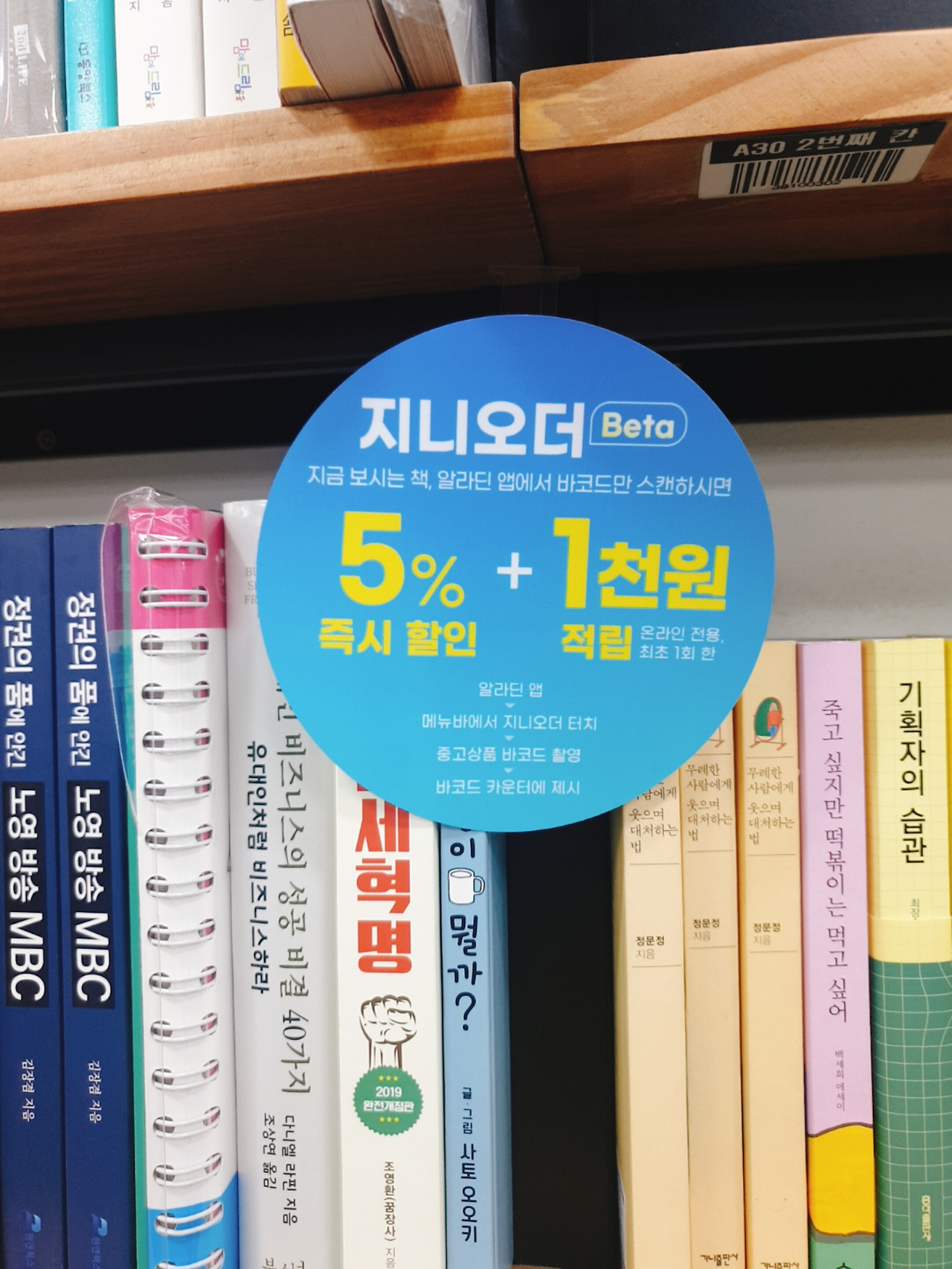 중고서점의 변신 결국 무인점포로 가는 걸까요?알라딘이라 서비스도 지니오더랍니다.그래서, 다음 서비스가 기대됩니다. 확장 일지 신규 일지럭키백과 지니오더는 중복이 되지 않기에 지니오더로 합니다. 5% 할인