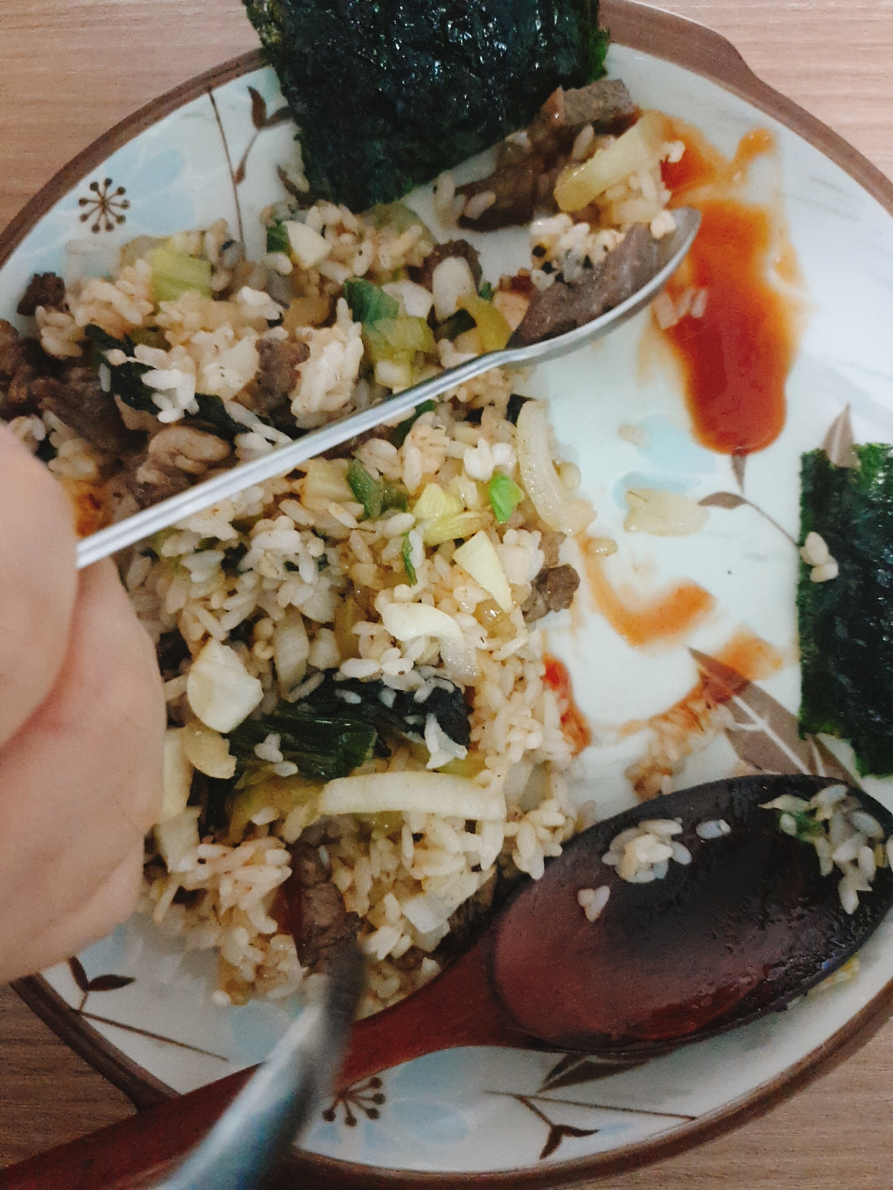 주말은 꼬기 꼬기 데이랍니다.아침은 스떼끄, 점심은 라면에 남은 꼬기, 저녁은 꼬기를 자근 자근 짤라서 볶음밥으로