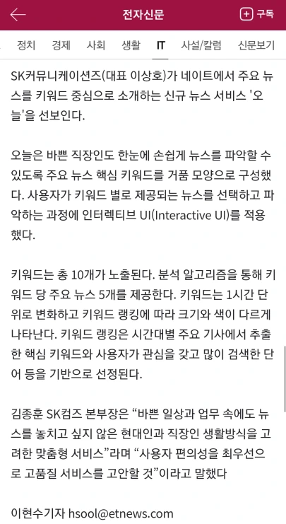 SK커뮤니케이션즈(대표 이상호)가 네이트에서 주요 뉴스를 키워드 중심으로 소개하는 신규 뉴스 서비스 '오늘'을 선보인다. 오늘은 바쁜 직장인도 한눈에 손쉽게 뉴스를 파악할 수 있도록 주요 �