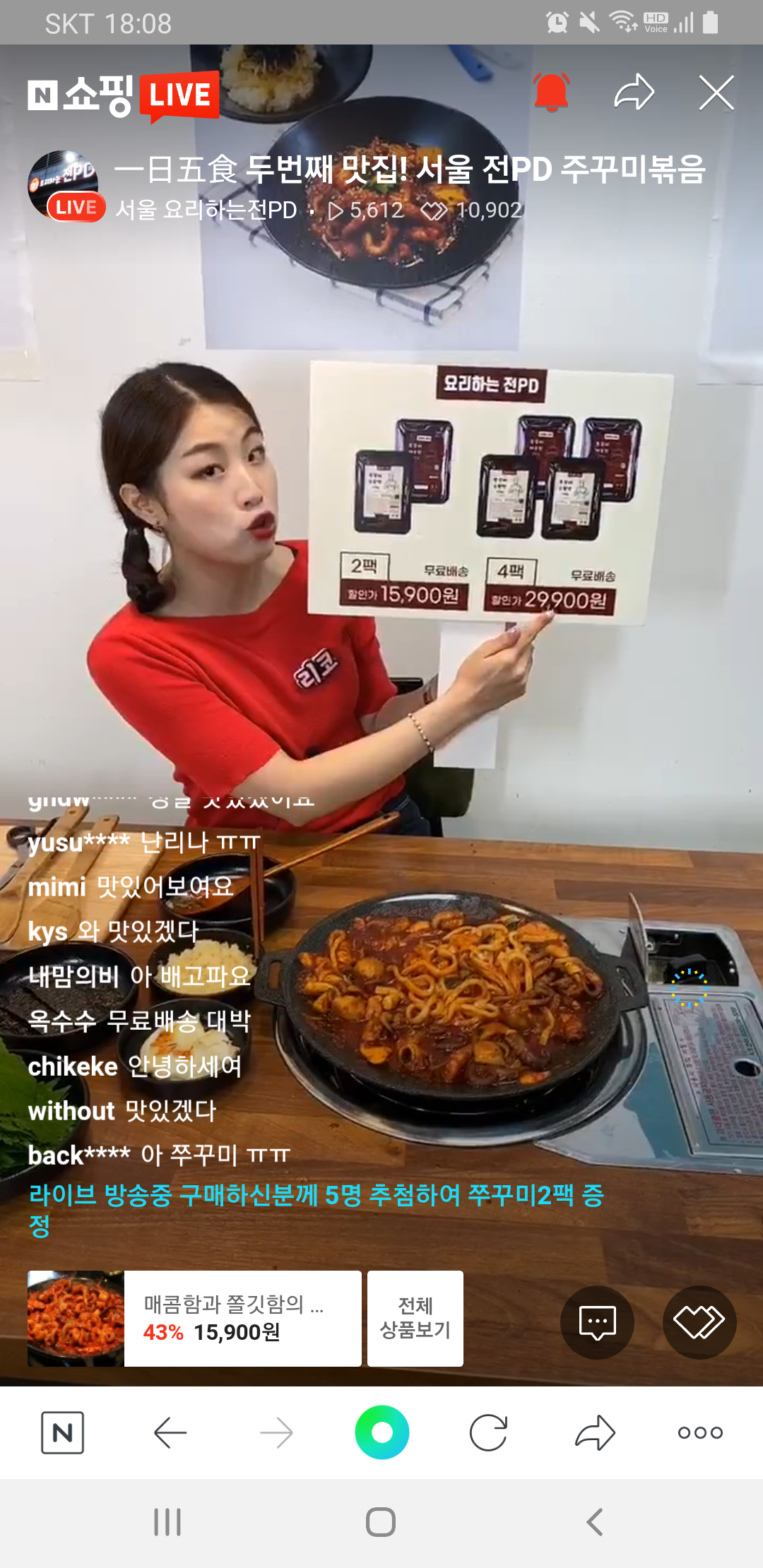 주꾸미,쭈꾸미,포장,주말,간편식,네이버쇼핑라이브