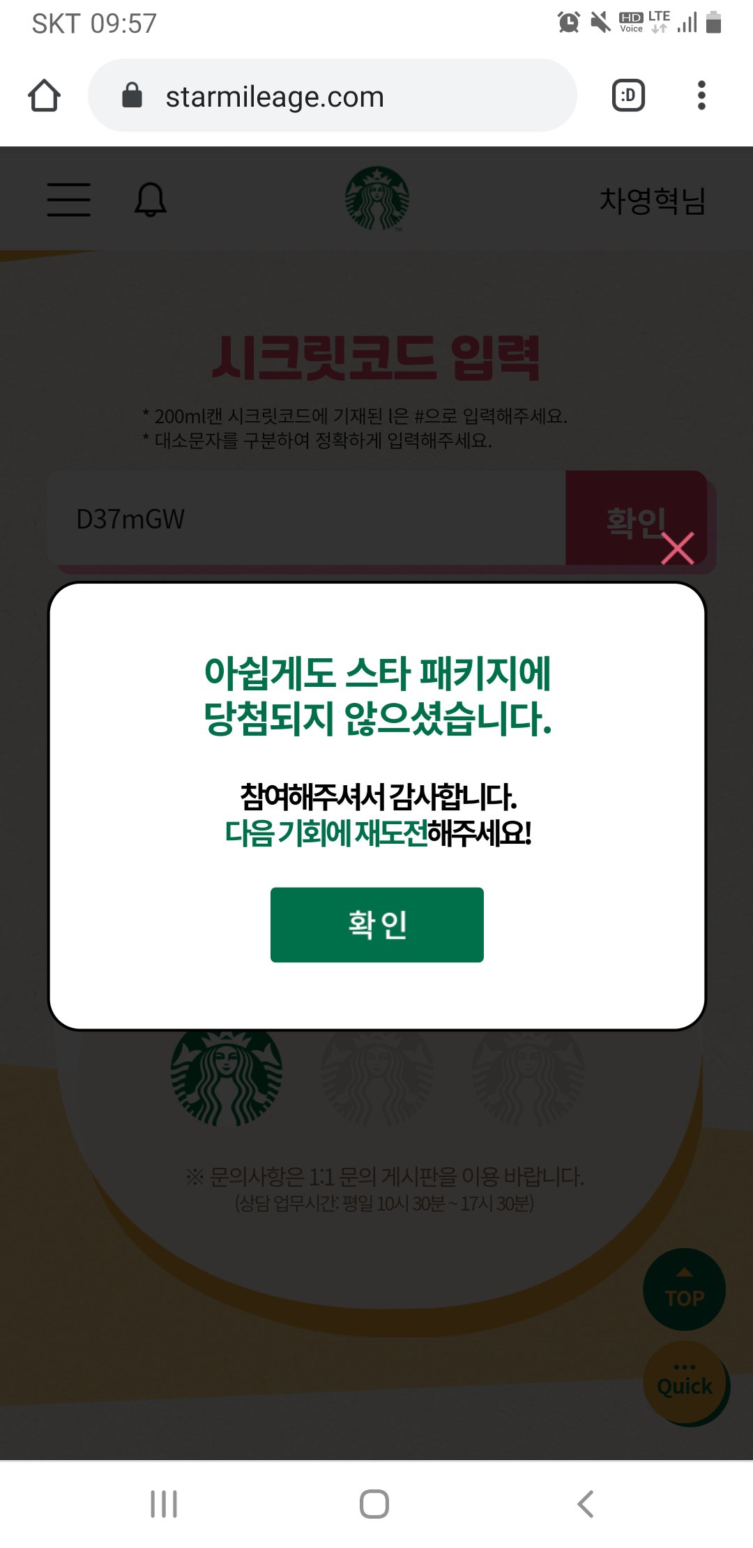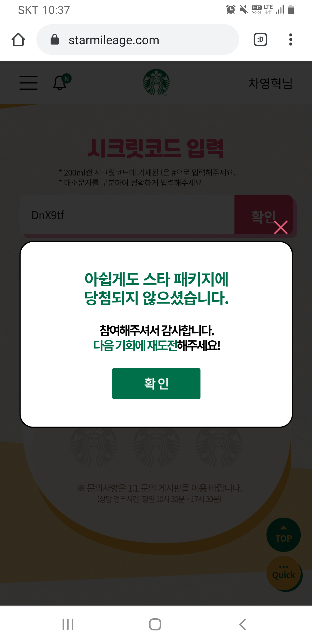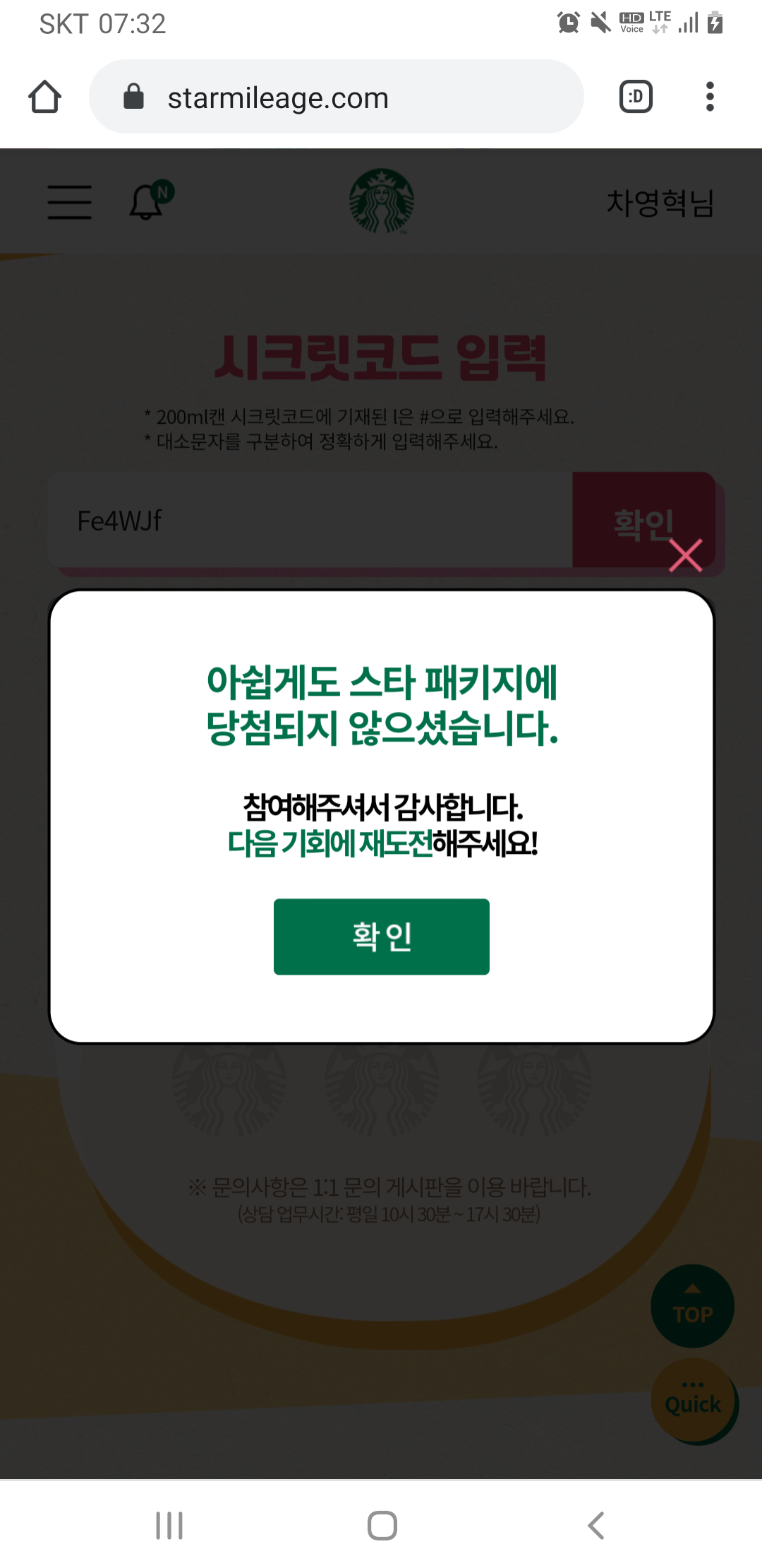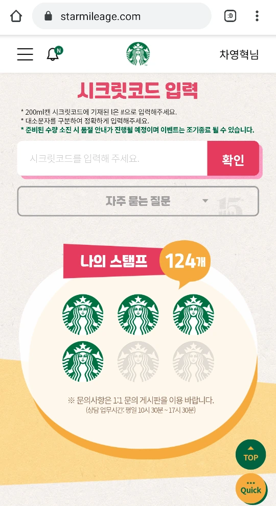 시크릿 코드를 모으면 스타벅스 MD가 내손에!