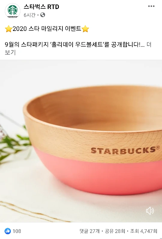 스벅RTD,9월,스타패키지,홀리데이우드볼세트