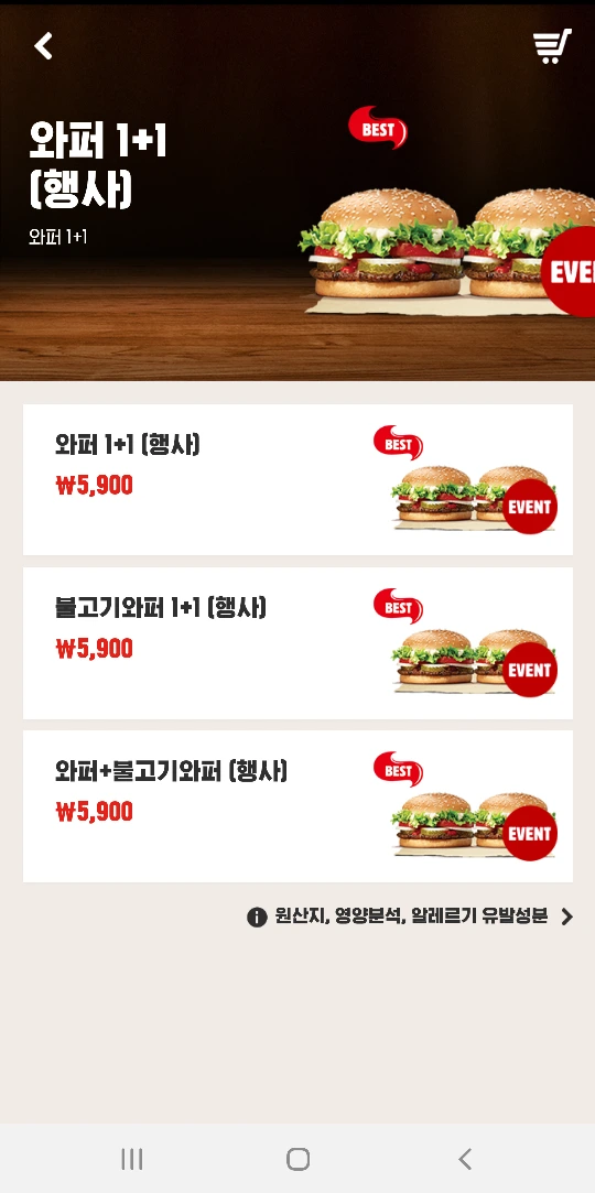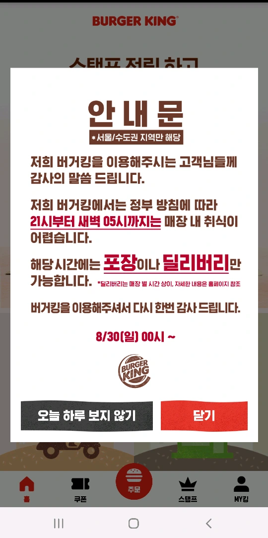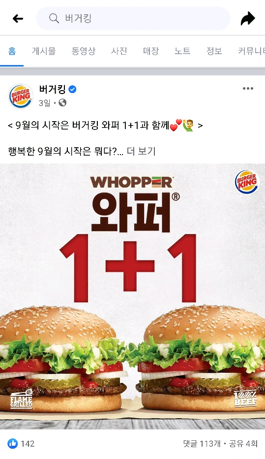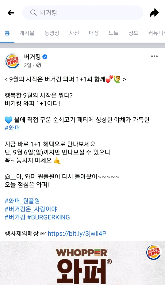 버거킹 와퍼 1+1 행사