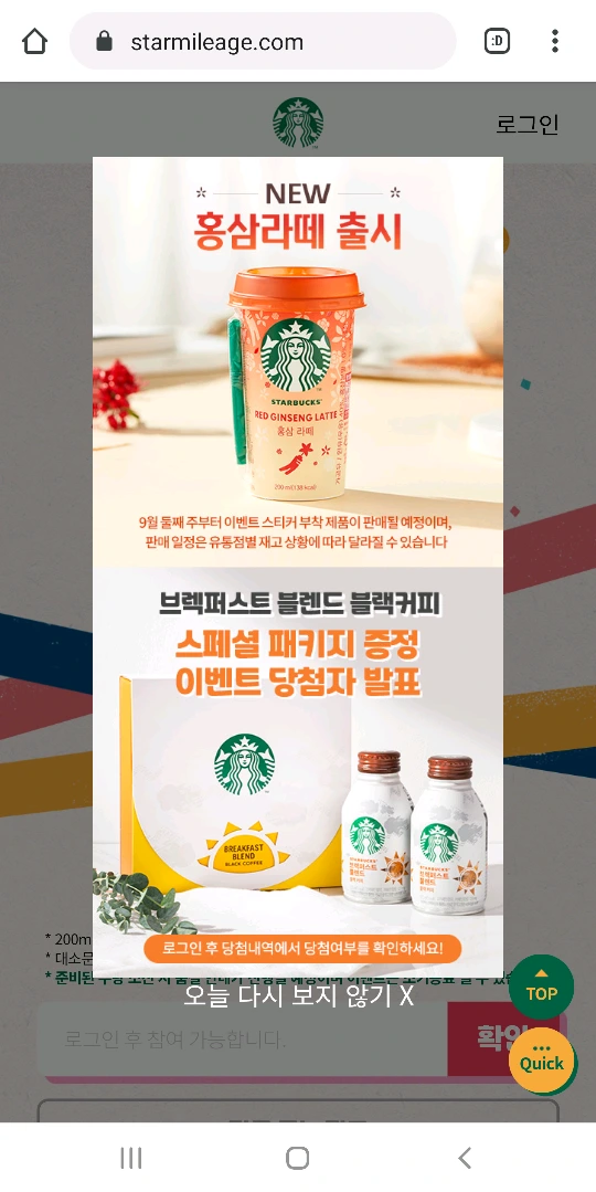 스타벅스RTD,홍삼라떼,이벤트,한박스