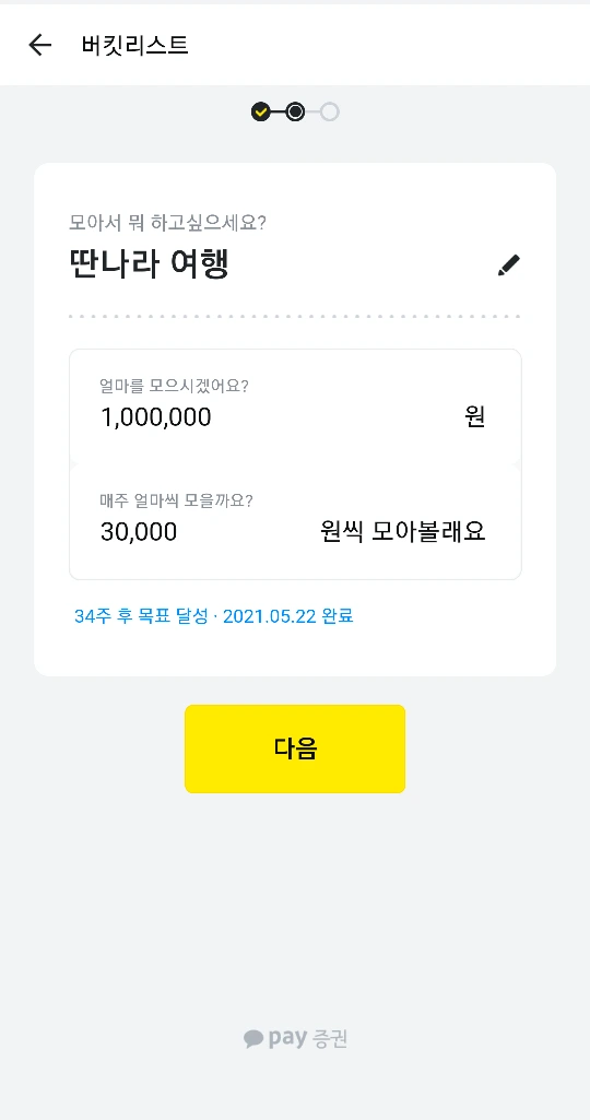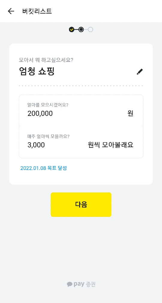 [서울경제] 카카오페이가 목표 금액만 정하면 이를 달성할 때까지 자산 관리를 도와주는 ‘버킷리스트’를 출시했다. 전 국민을 위한 ‘내 손 안의 프라이빗뱅커(PB)’가 되겠다는 비전을 내건 �