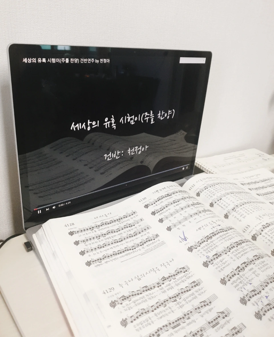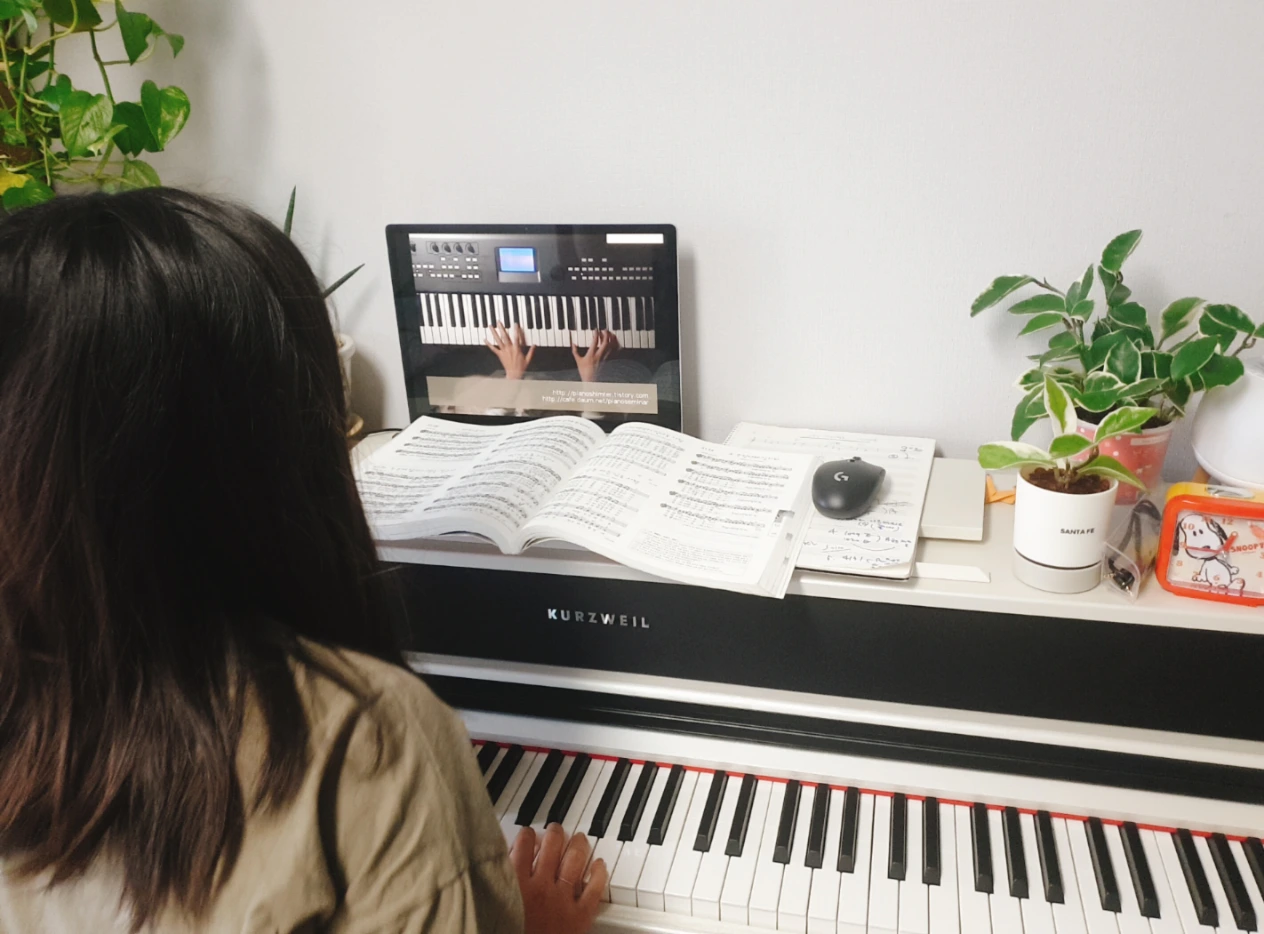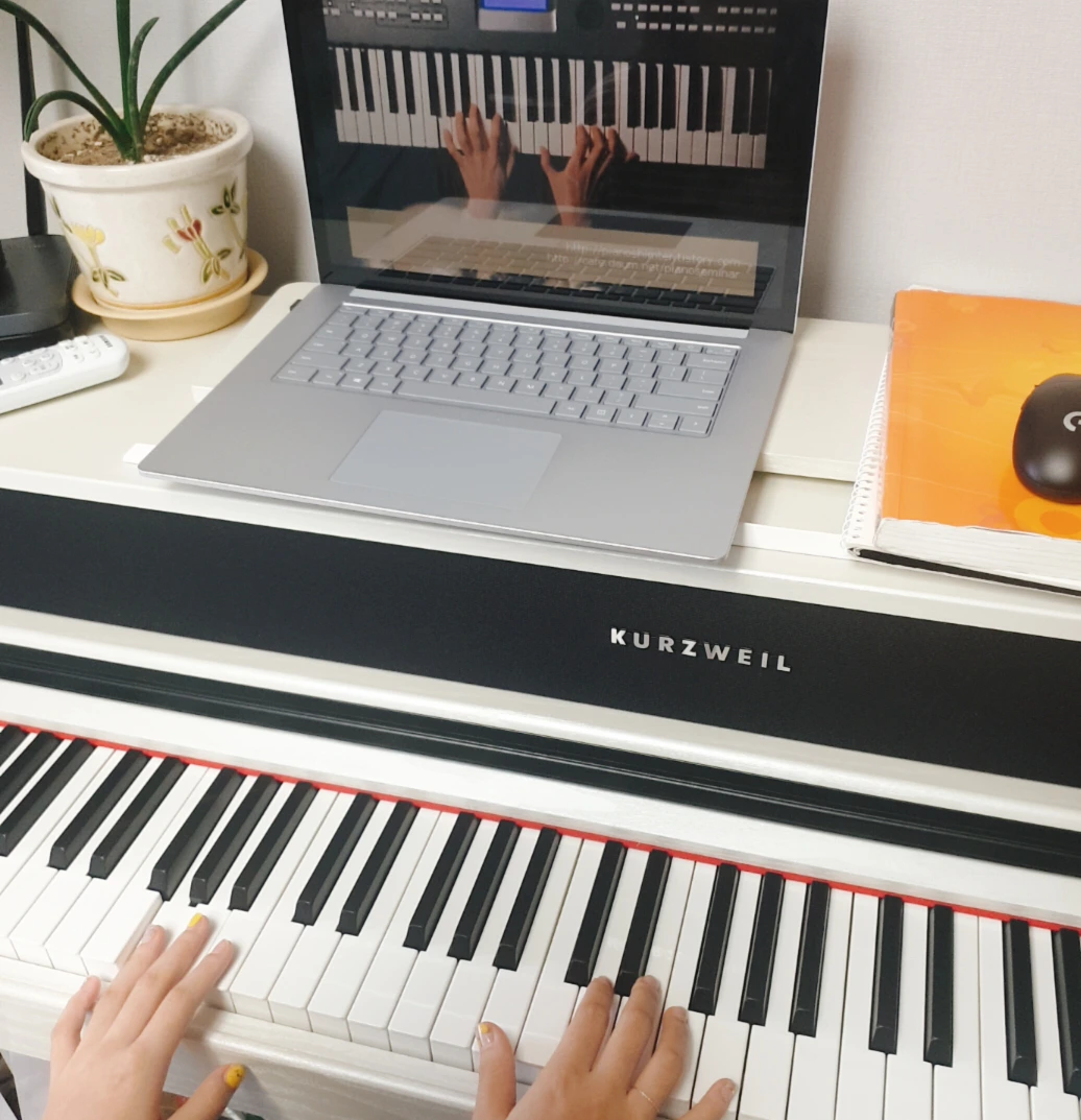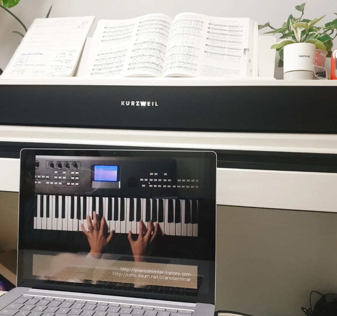 디지털피아노와 온라인의 조화디지털피아노의 블루투스 기능으로 디지털피아노의 앰프 시스템을 활용하고, 동영상 녹화도 노이즈 없이 진행합니다. 바로 CUP410의 힘입니다.그리고 천정아 선생님의 유튜브 연주 영상이 빛이 납니다. 집에서 디지털스럽게 연주가 진행됩니다.