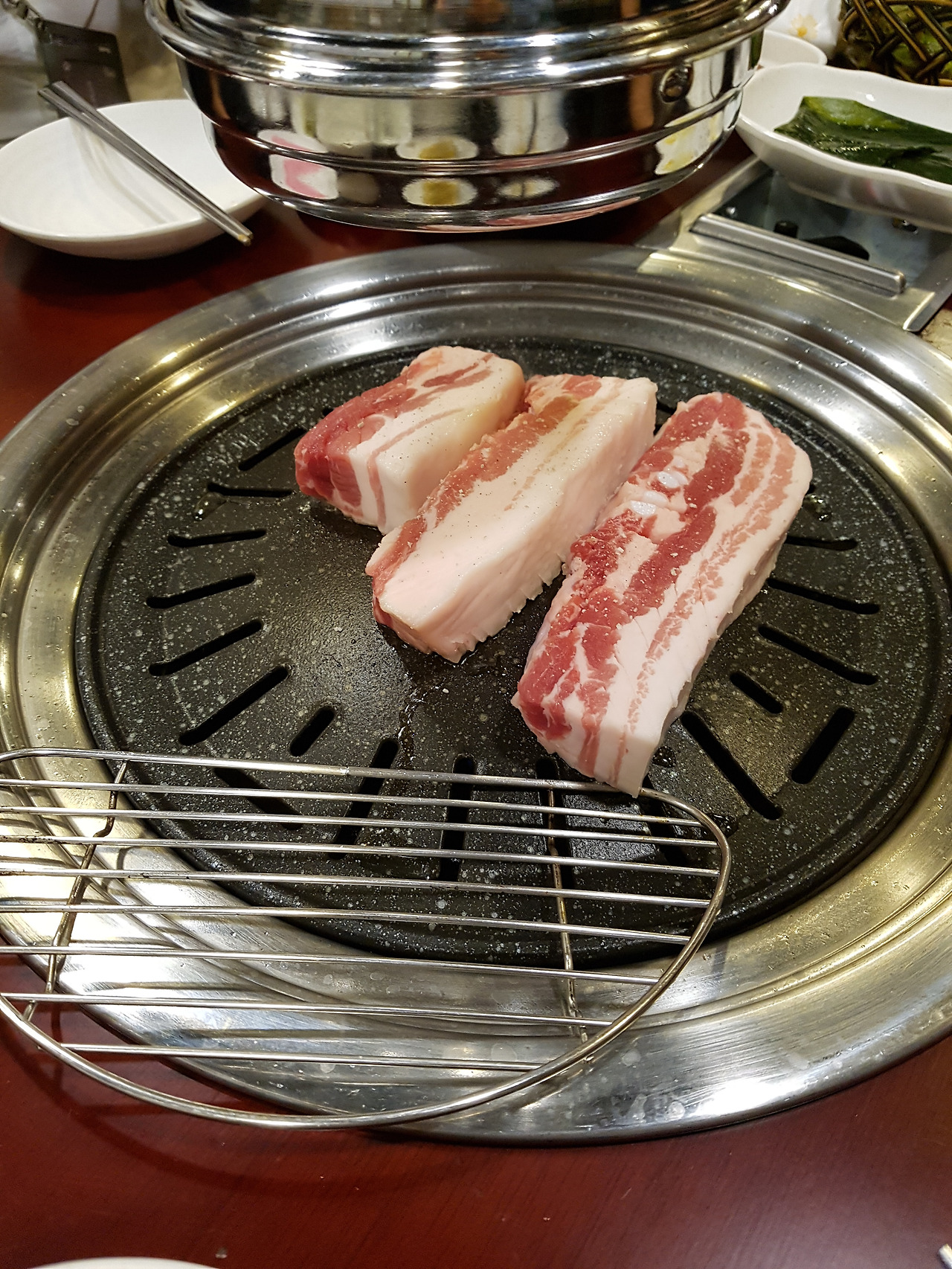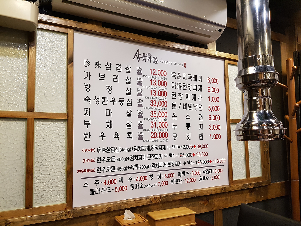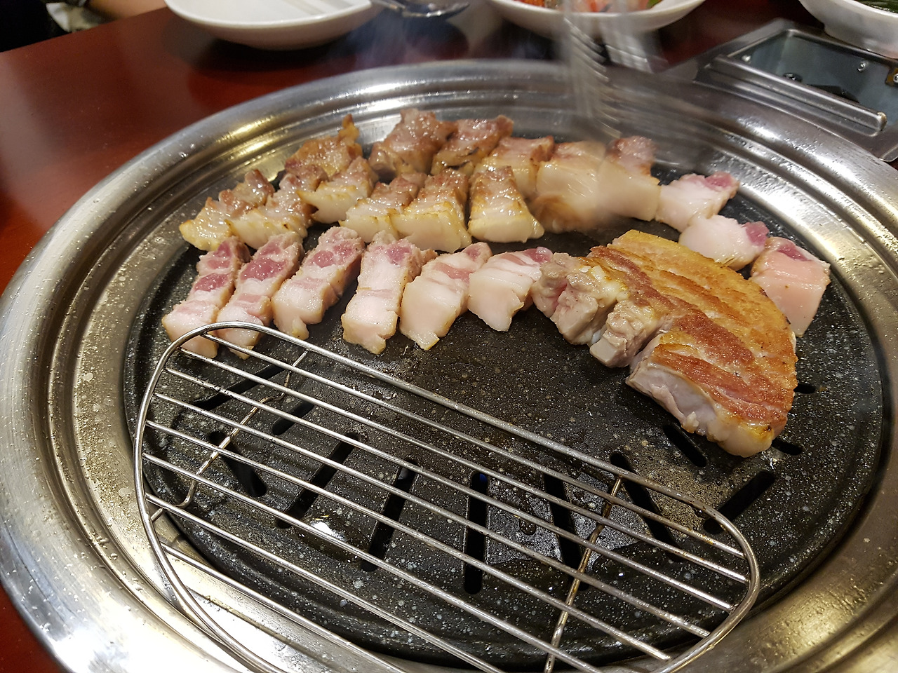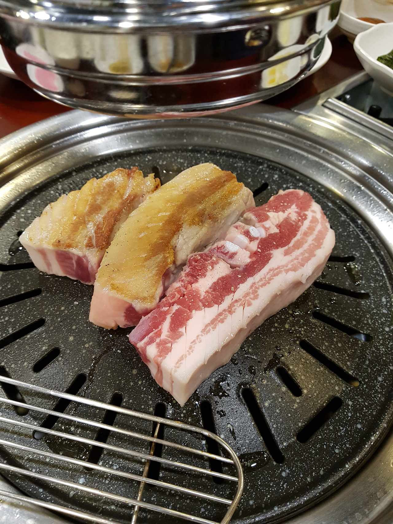 아무도 밥을 시키지 않았기에 밥 없이 회식이 끝났기 때문이다. 셋트 메뉴를 시키면 된장이나 김치를 2,000원에 먹을 수 있다고 하여 공기밥 없이 고기와 찌개로 시작한 것이 주요했다.
