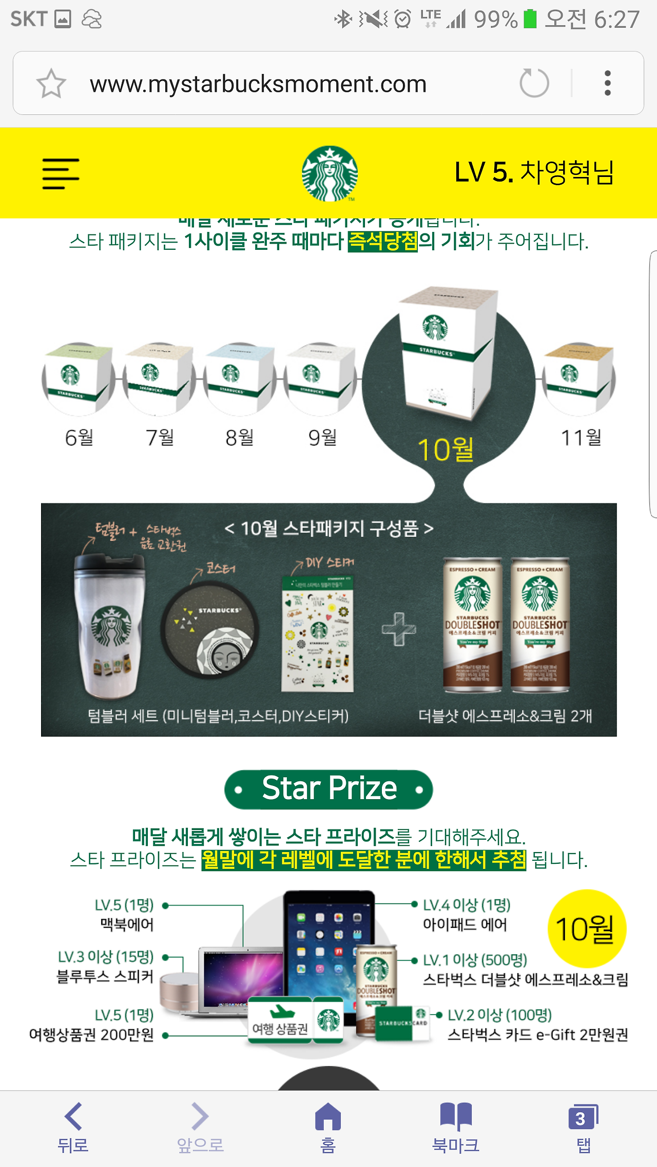 레벨 끝에 도달하였다. 이번달은 여기까지 하고 다음달 이벤트를 고대해 본다. 아니면 이번달 이밴트가 미니 텀블러라 나쁘지 않아, 몇 번(?) 더 시도 할 수도 있다.