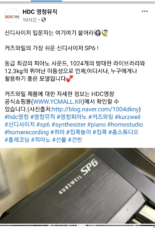 신디사이저추천,커즈와일,영창뮤직,페이스북