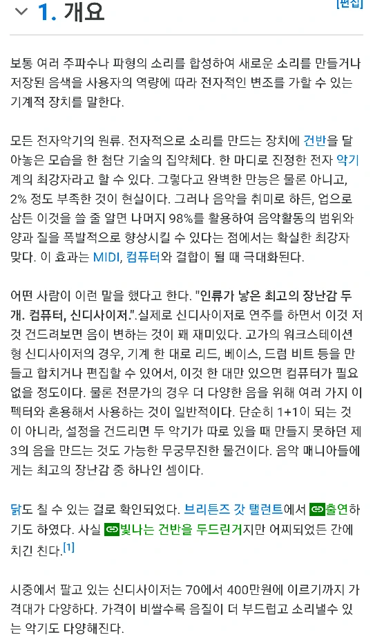 그런데, 신디사이저는 모란 말인가?