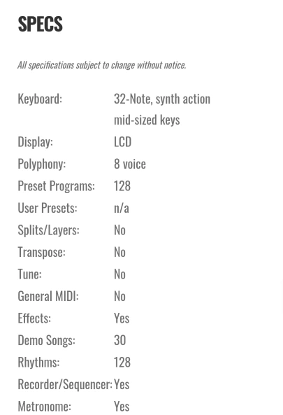 OVERVIEW | SPECS | IMAGES | FAQ |DOWNLOADS | SUPPORT | BUY NOW OVERVIEW Portable Arranger Keyboard.