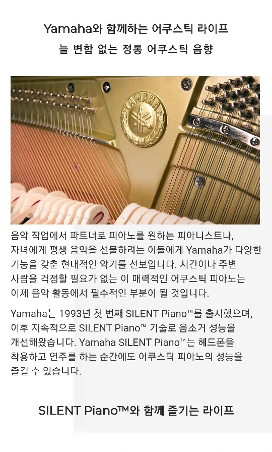 층간소음에서 해방은 알겠고 사일런트 피아노 그 자체로 모든 것이 설명도 되지만, 문제는 별도 설치라는 겁니다. 특히, 야마하 피아노의 명성에 사일런트 피아노까지 더해지면 현실적으로는 부담입니다.