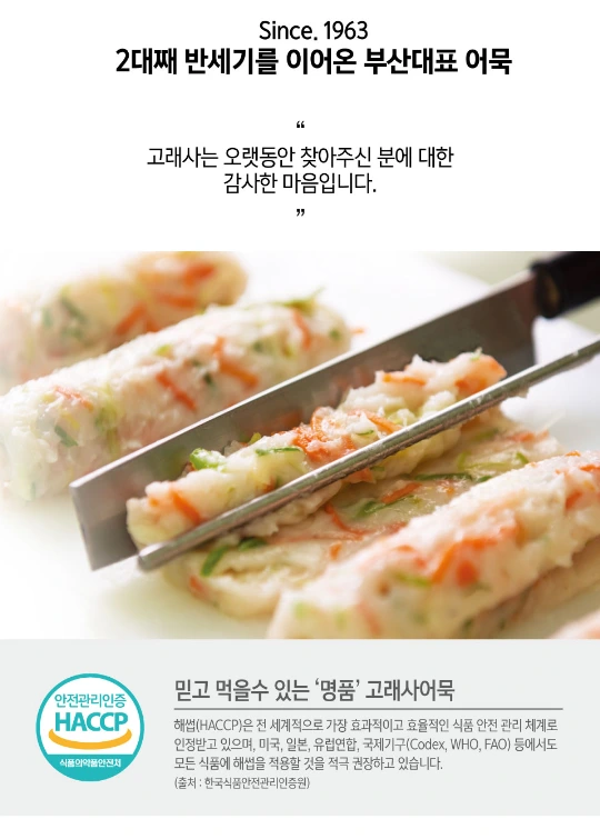 프리미엄 부산어묵 고래사어묵, 부산어묵 브랜드 중 유일한 부산시 인증 부산우수식품 선정, 1963년 창립, 고래사어묵 공식 홈페이지
