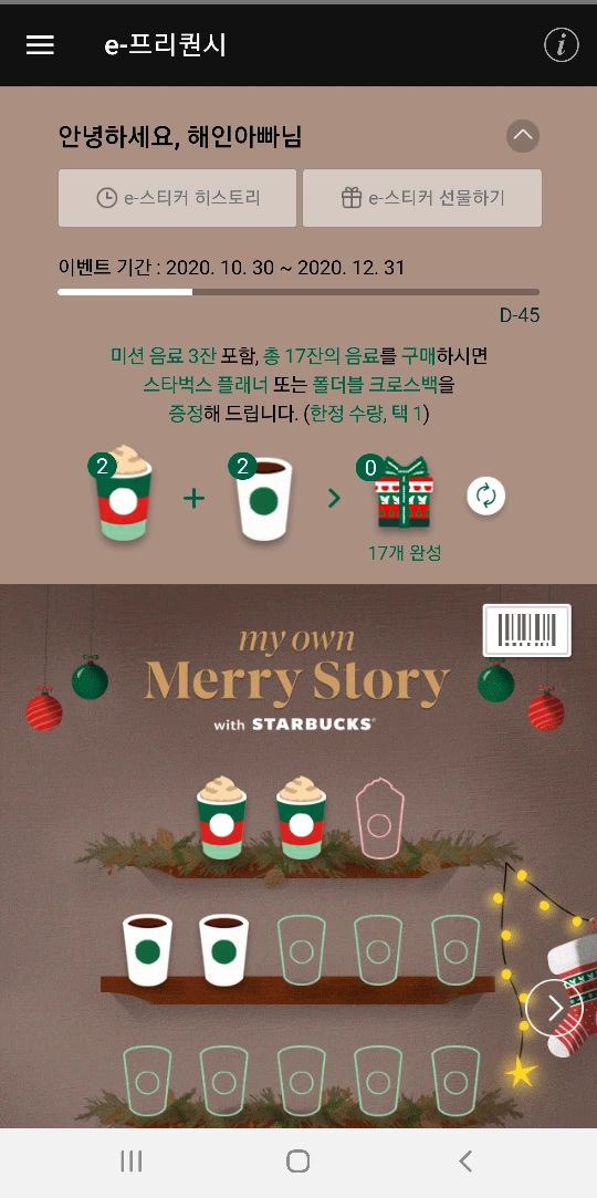 스타벅스별,크리스마스음료,개인컵,아침,저녁