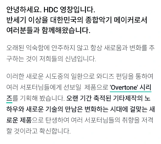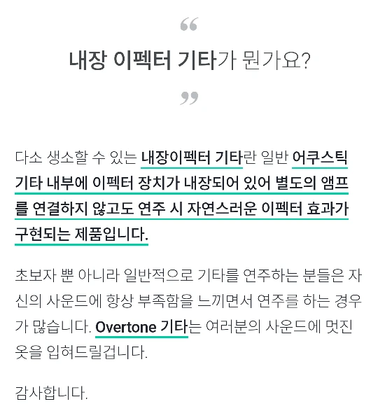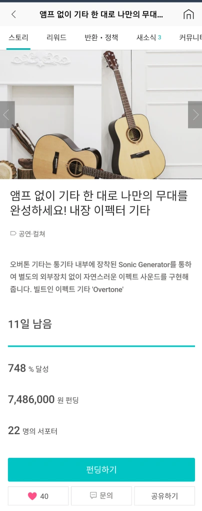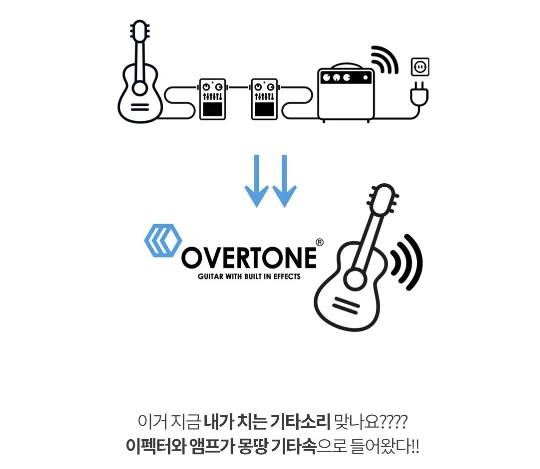 기타의 혁신 이런 기타가 없을까 했는데 역시 와디즈로 영창뮤직이 구현했습니다.바로 오버톤입니다.엠프와 이펙터가 기타 안에 포함되어 있습니다.기타에도 관심이 있기에 고민 중입니다.