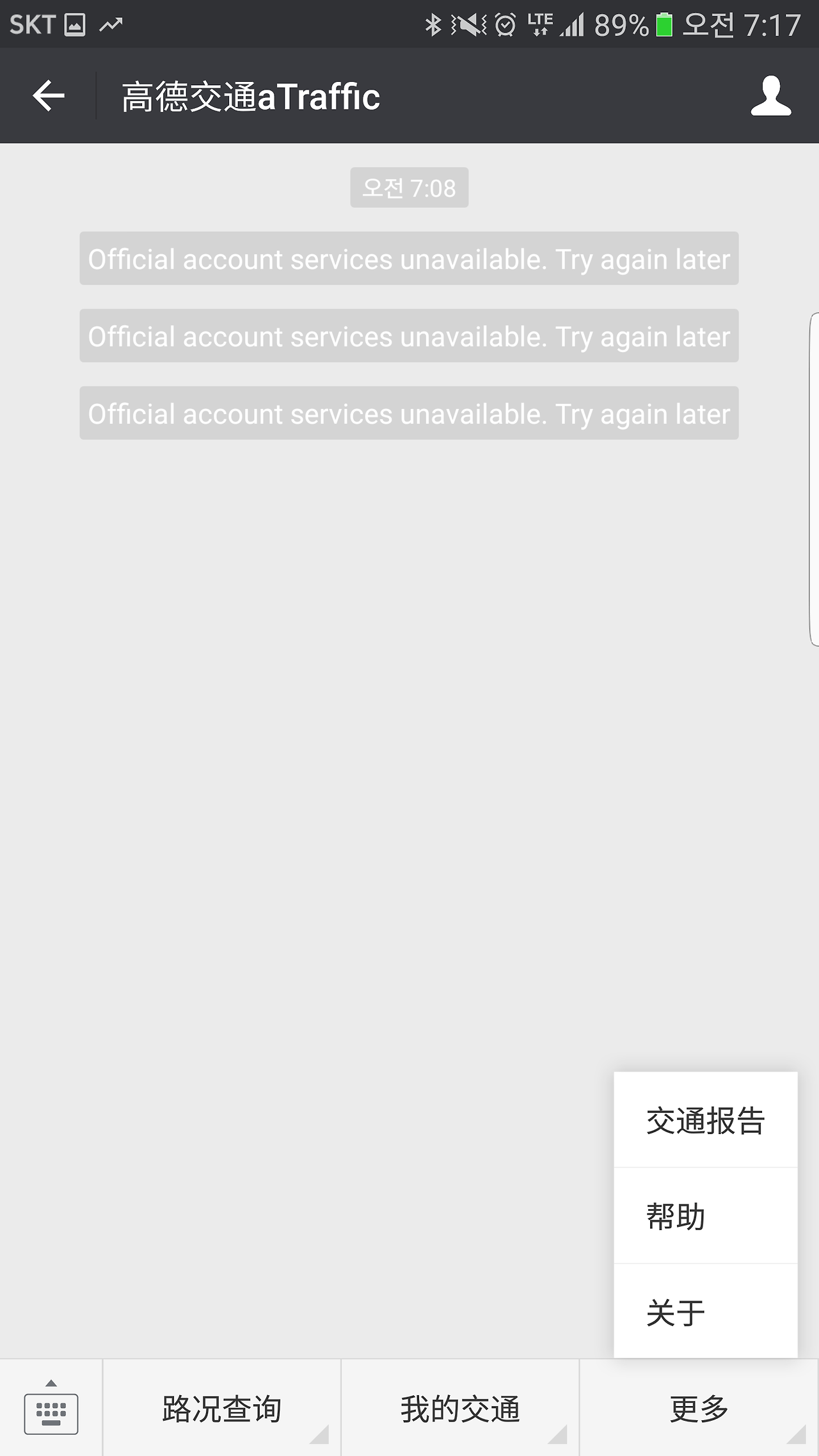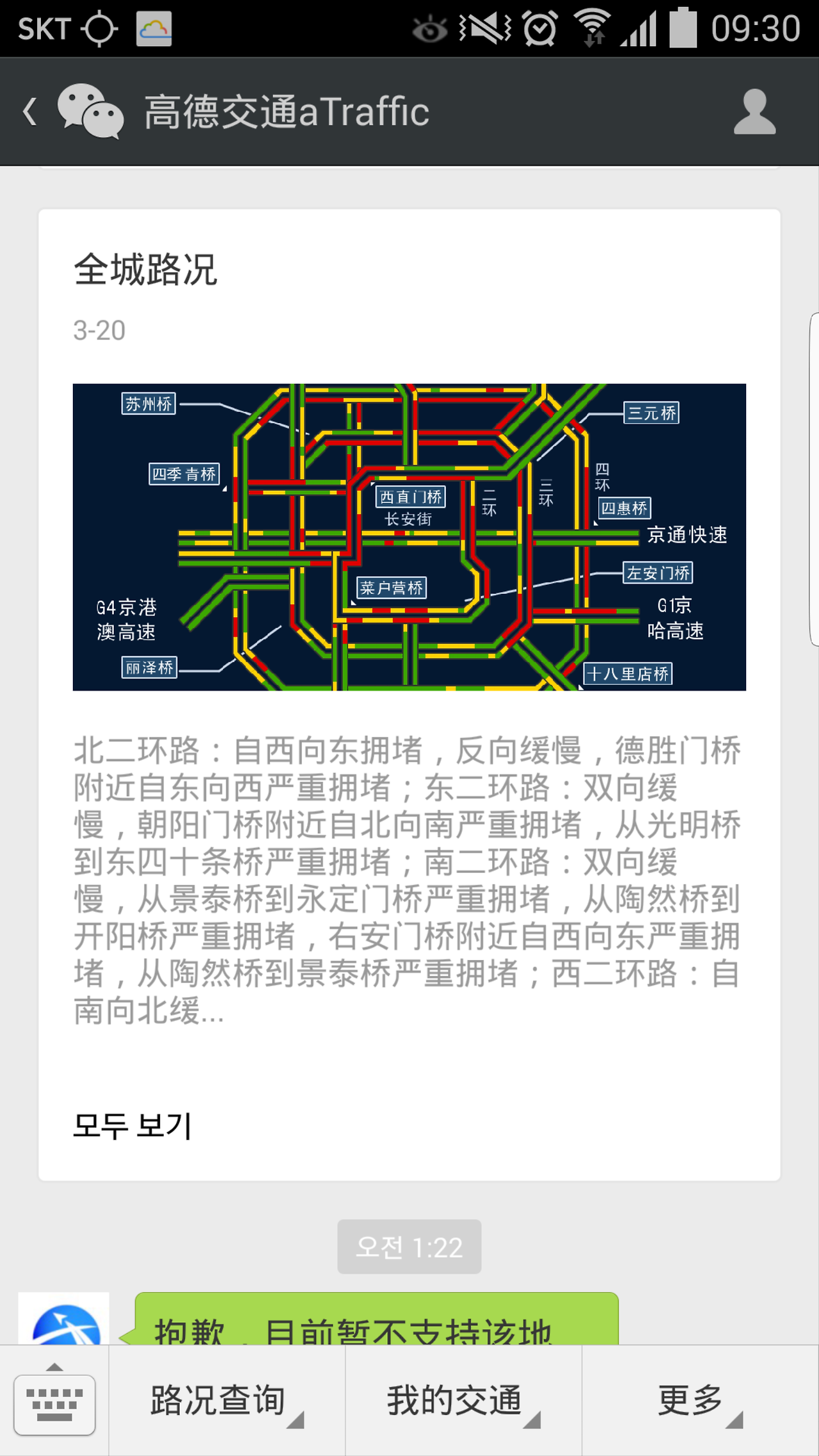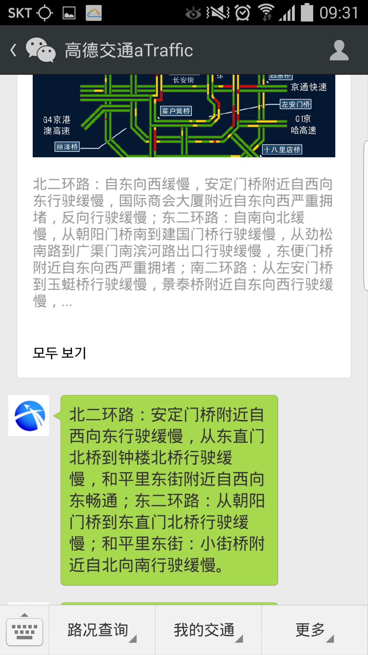 Wechat에서 벌써 3~4년 전에 aTraffic에서 위치기반의 전방 교통정보 요약맵 서비스를 이미 하고 있었다.