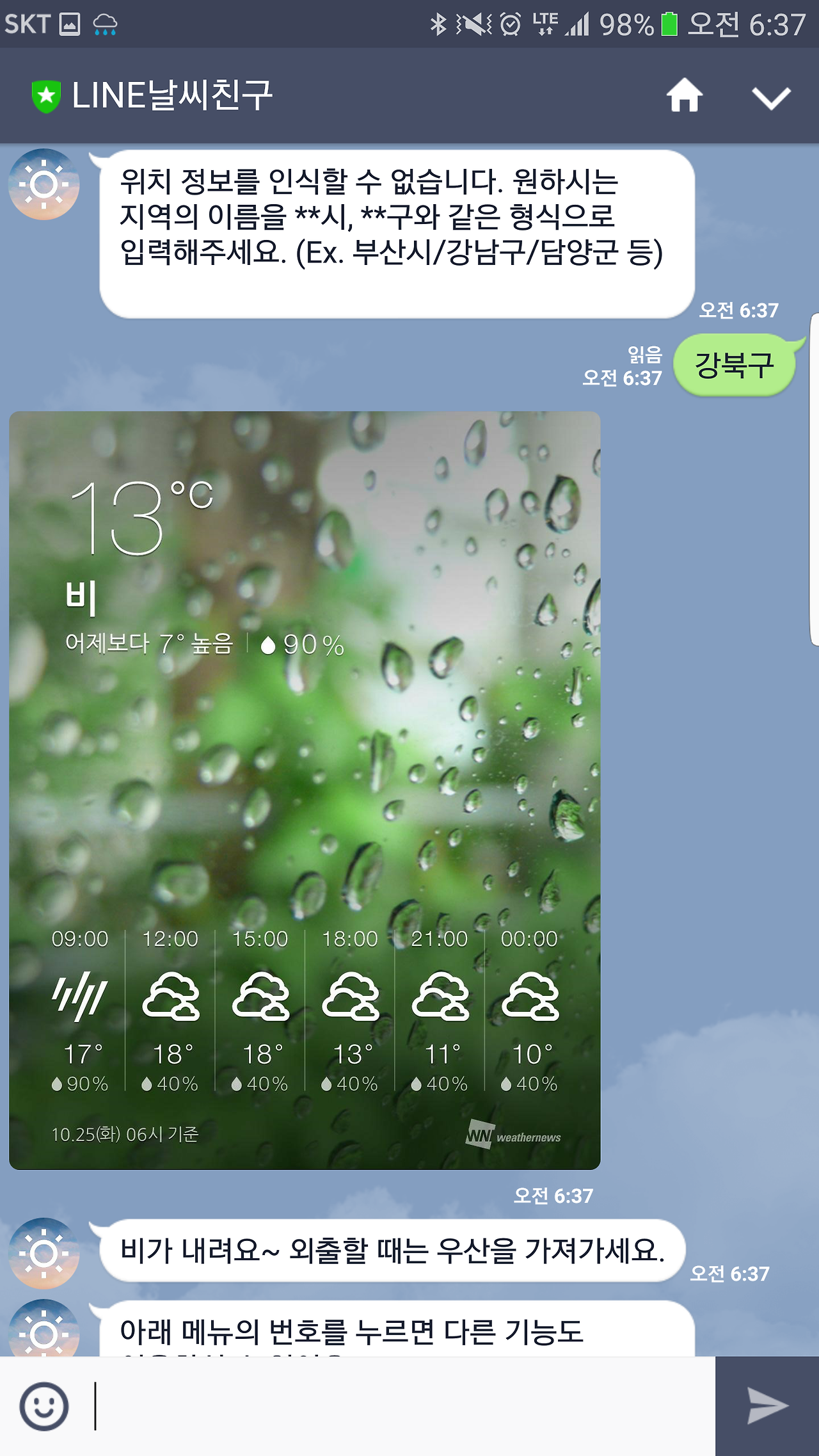 IT.날씨정보.챗봇.라인날씨친구.메신저.LINE.Wechat.오프디맨드