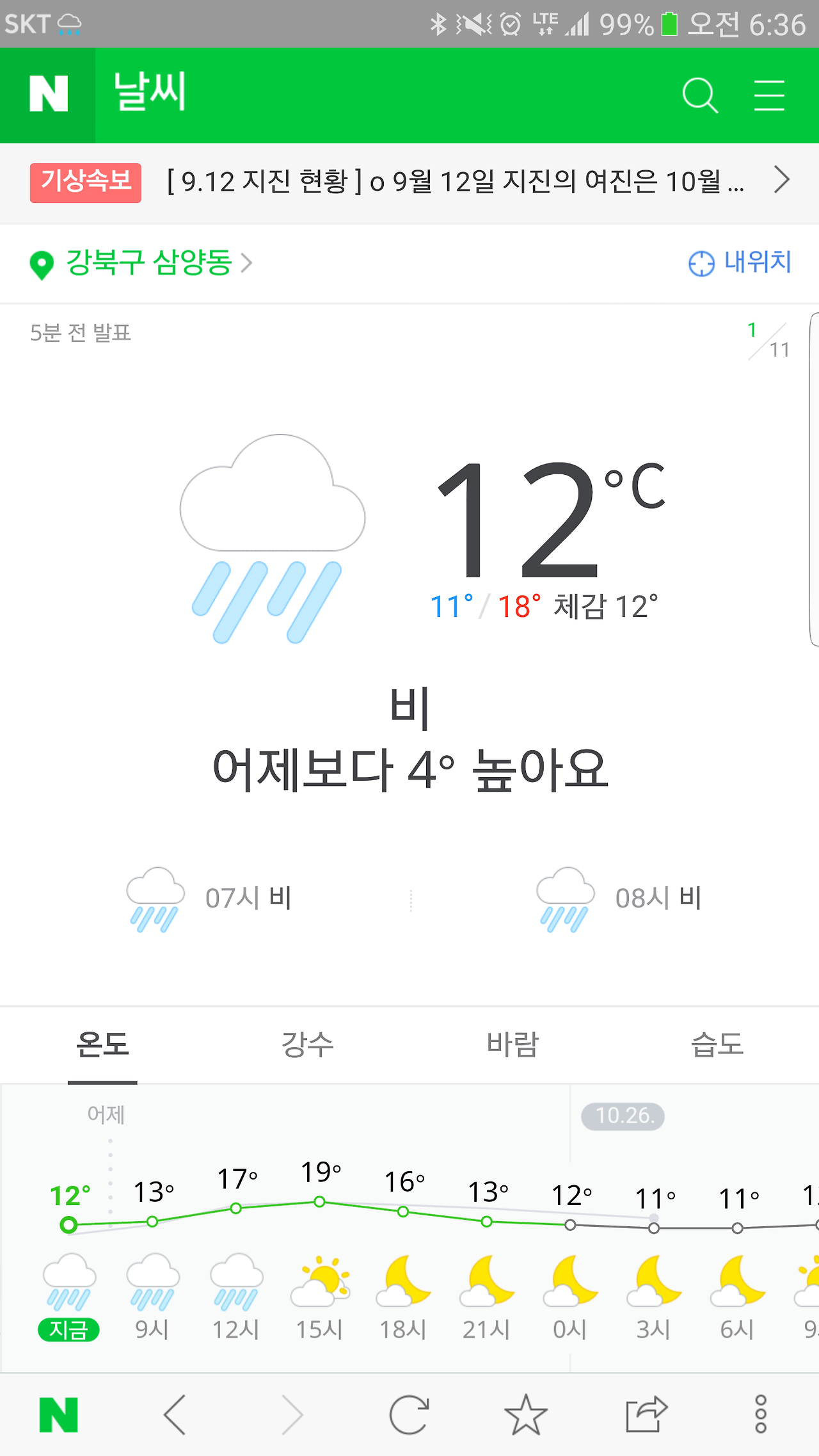 그리하면 지역의 날씨정보의 결과가 나온다.