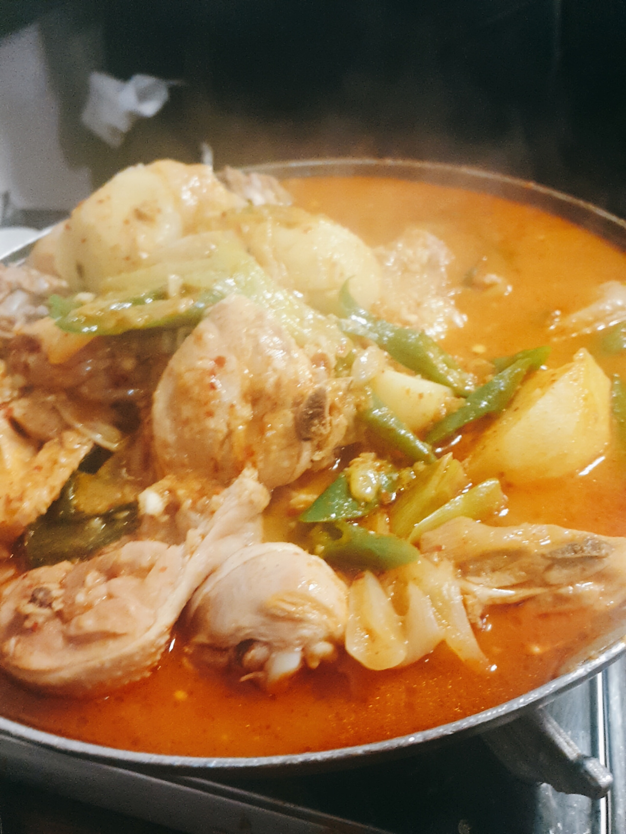 국물이 칼칼한 닭도리탕고추가 들어가서 국물이 쎤합니다 당분간 거리두기 강화로 또 못 가겠지만, 다음을 기약하며