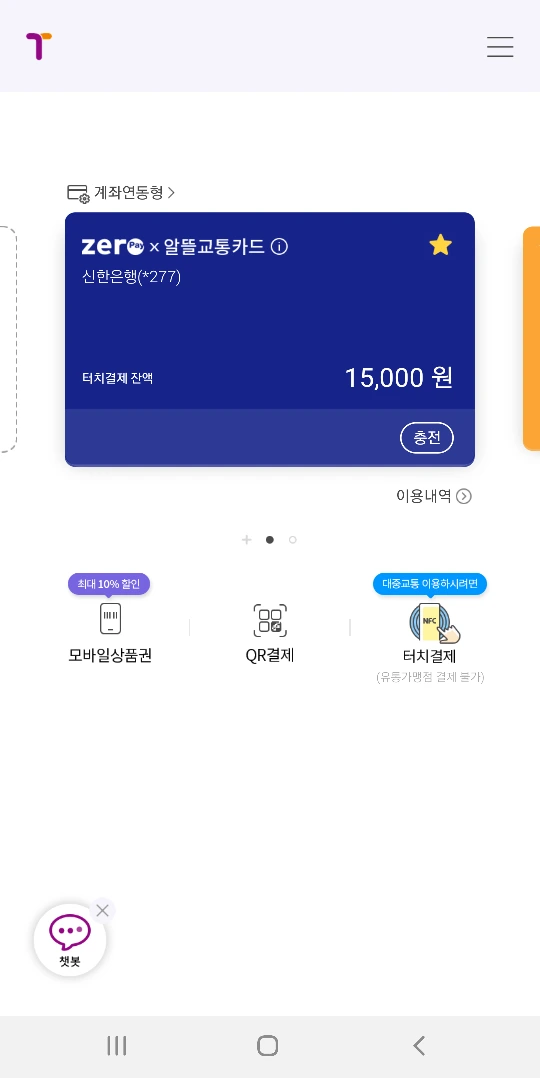 오늘부터 사용합니다.생각보다 번잡하지만 써보렵니다. 된장남으로 스벅 마시지만 교통비는 아끼고 싶습니다.일단 고고씽해 보고 할인 혜택 정리해 보겠습니다.