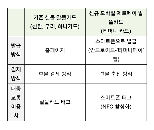 대중교통 이용 요금을 최대 30%까지 절약할 수 있는 ‘알뜰 교통카드’를 모바일로도 발급받을 수 있게 됐다. 29일 국토교통부와 대도시권광역교통위원회에 따르면, 지난 25일부터 ‘티머니페이