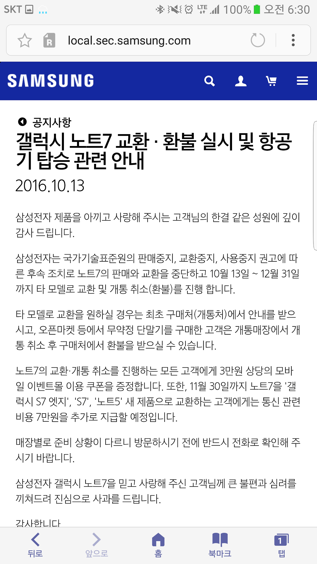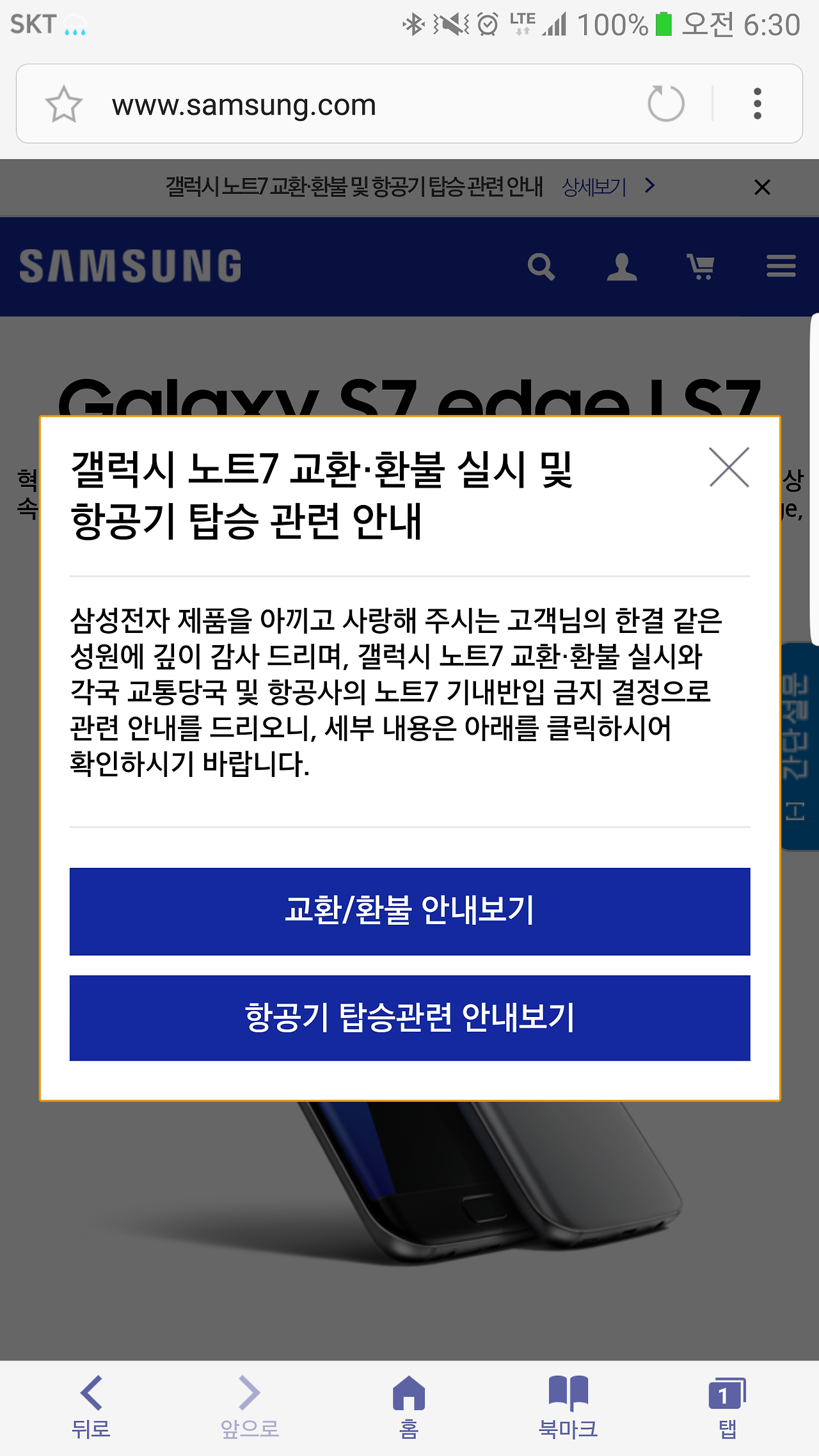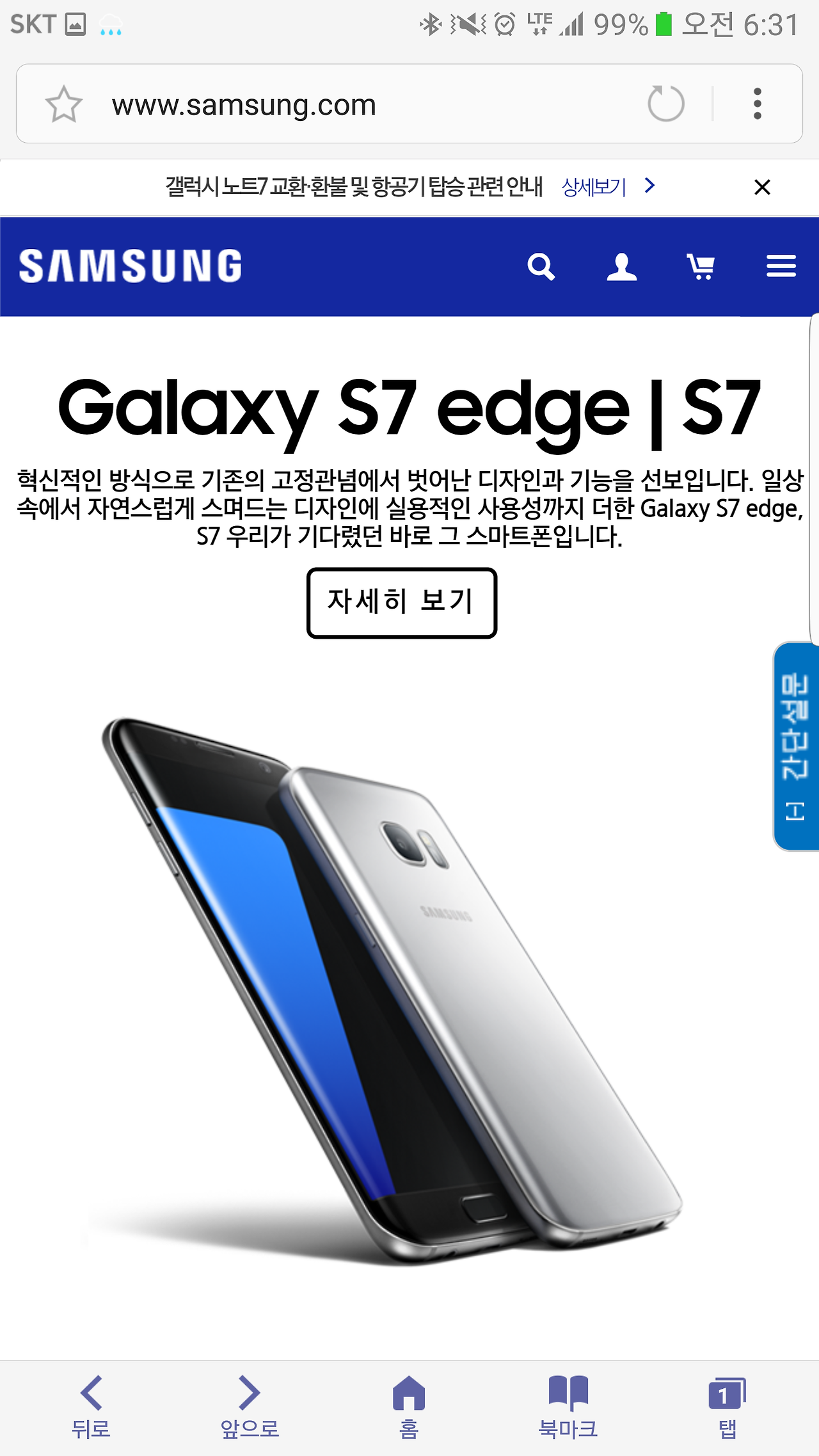 언제부터인가 페이지 자체에서 사라진 노트7, 그리고 메인에 재등장한 S7과 엣지가 아련하다.