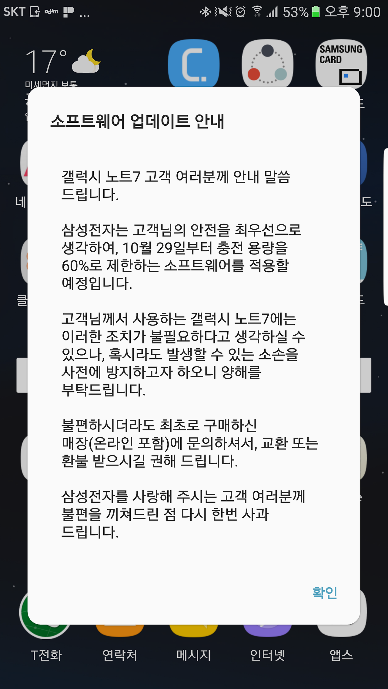 그리고 폰을 바꾸고 단종이 결정되고, 어떤 폰을 고를까 고심하던 차에 폰에 공지가 떴다.
