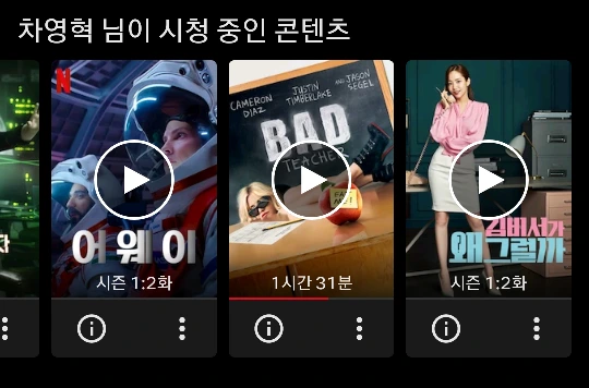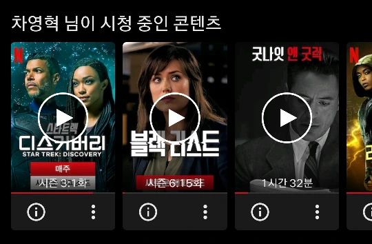 퇴근시간 잠자기 전 주말에. 주로 이어폰을 꼽고 스마트폰으로 봅니다. 그냥 스트리밍으로 주구장창 봅니다. 나만의 여가가 스트리밍으로 바뀐 지가 꽤 되었습니다. 시청기록으로 유추해 볼 때 판타지나 SF 미래 물도 즐겨보고, 말빨 엄청 쎈 캐릭터가 주도하는 드라마, 영화를 좋아하는 것으로 보입니다.