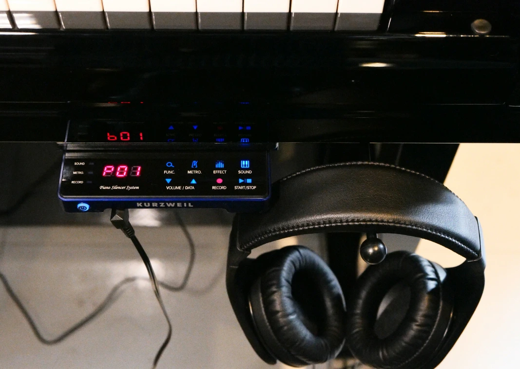 기존 어쿠스틱 피아노, 클래식 피아노에 방음 시스템을 설치하여 밤에는 헤드셋을 끼고 피아노를 치면 됩니다.