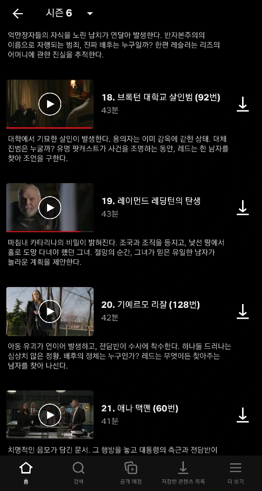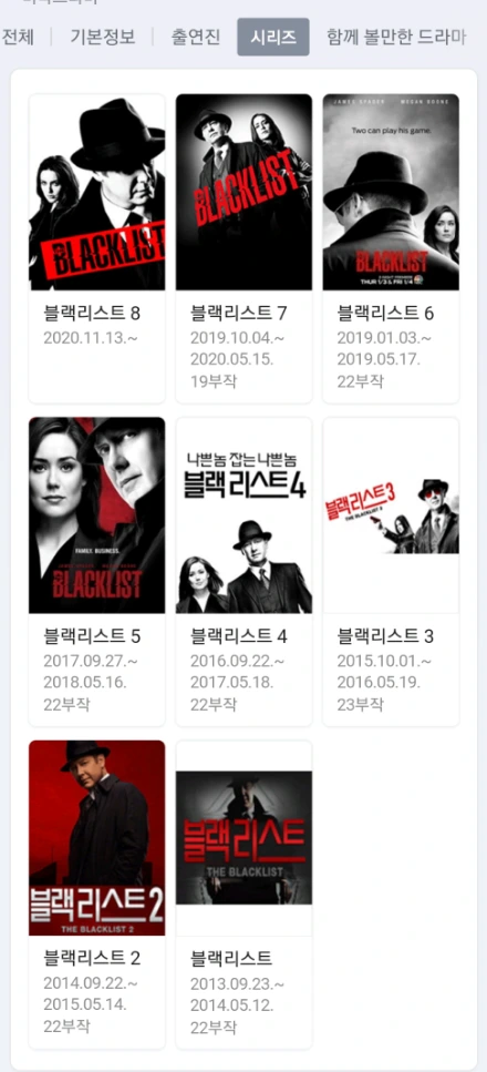 FBI에 자수한 블랙리스트 No1이 면책조건으로 블랙리스트를 FBI에게 공유하는 컨셉으로 시리즈가 진행되는데, 거의 무한도전급의 다양한 소재가 대단합니다. 그리고 왜 자수했는지를 풀어가는 이야기로 전개되는데, 시즌 6 쯤 가야 윤곽이 나오는 듯 하지만, 아직 상자 속에서 어떤 이야기가 나올지가 모릅니다. 더 큰 그림과 세계관이 감추어져 있을 거라고 생각이 듭니다. 톰킨, 베를린, 캐플린, 뎀베, 카트리나 그렇게 키워드가 되는 인물들도 있습니다.
