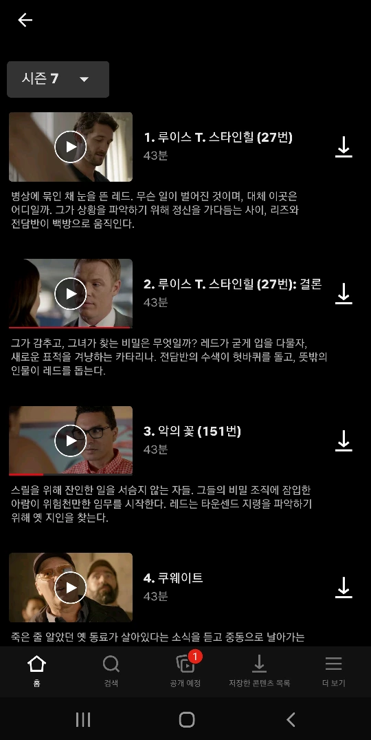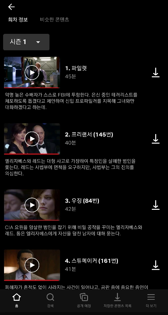 등장인물 레딩턴, 엘리자베스 킨, 톰킨 시즌1이 기억납니다.